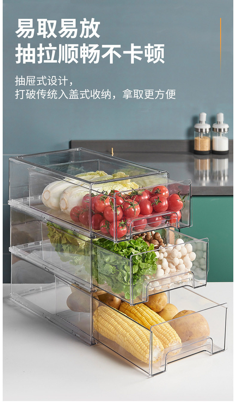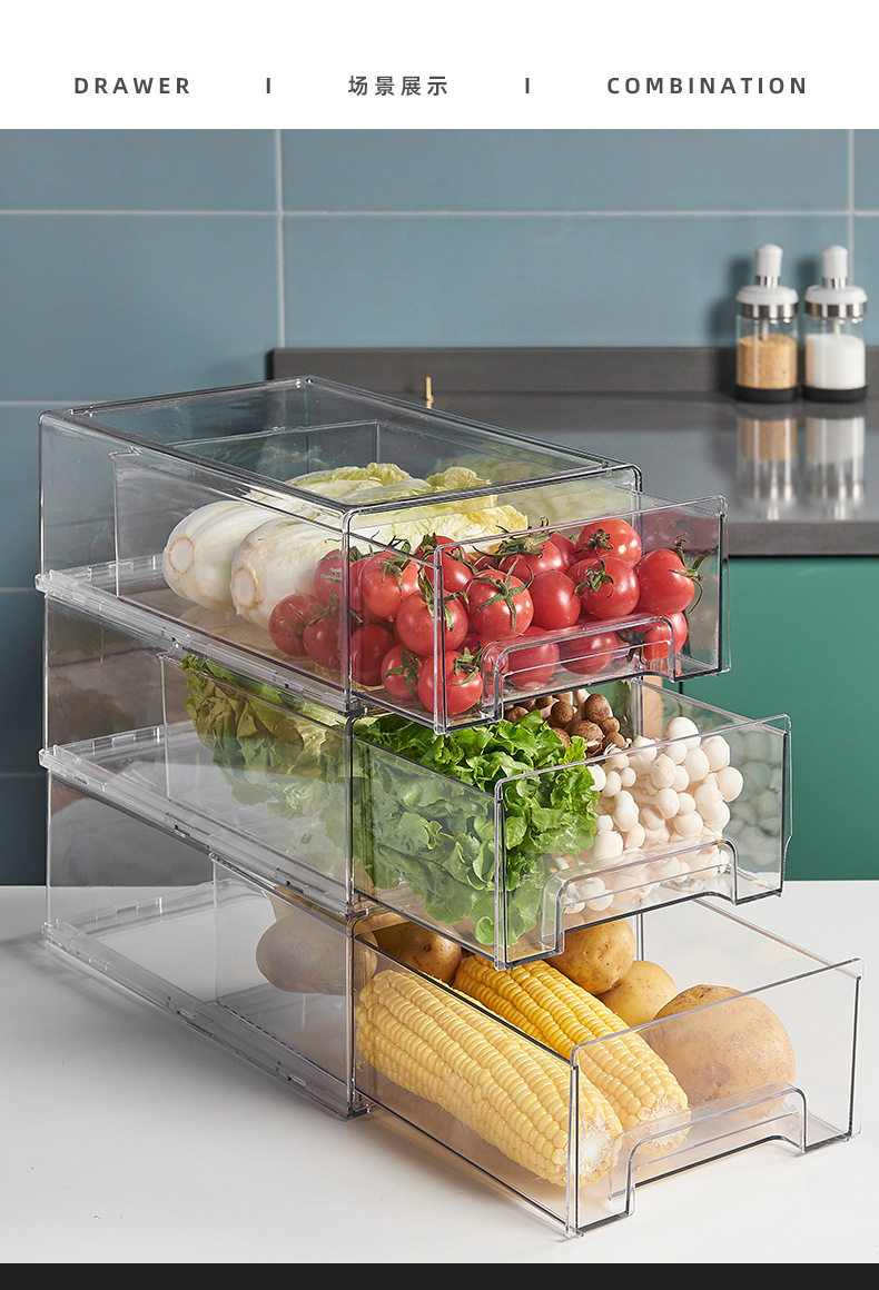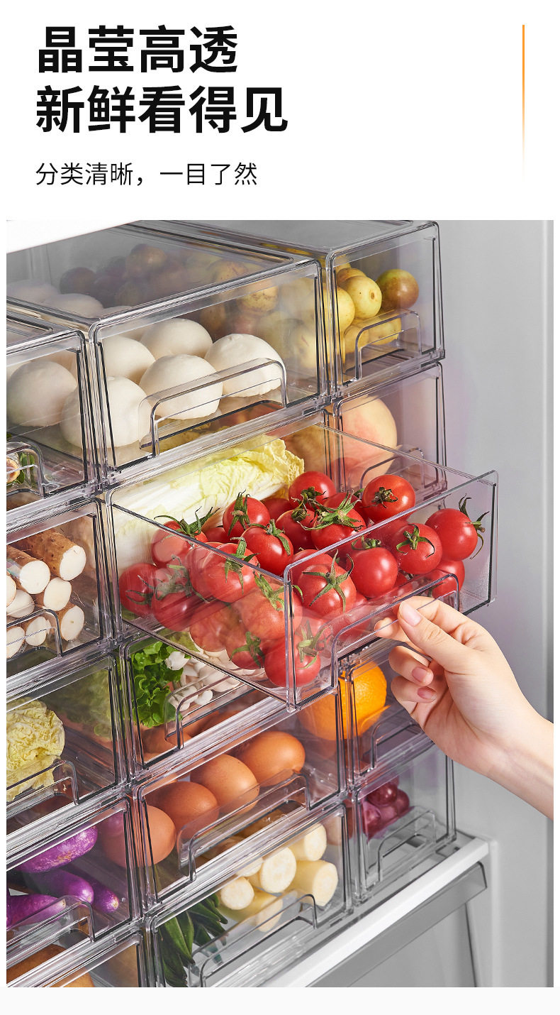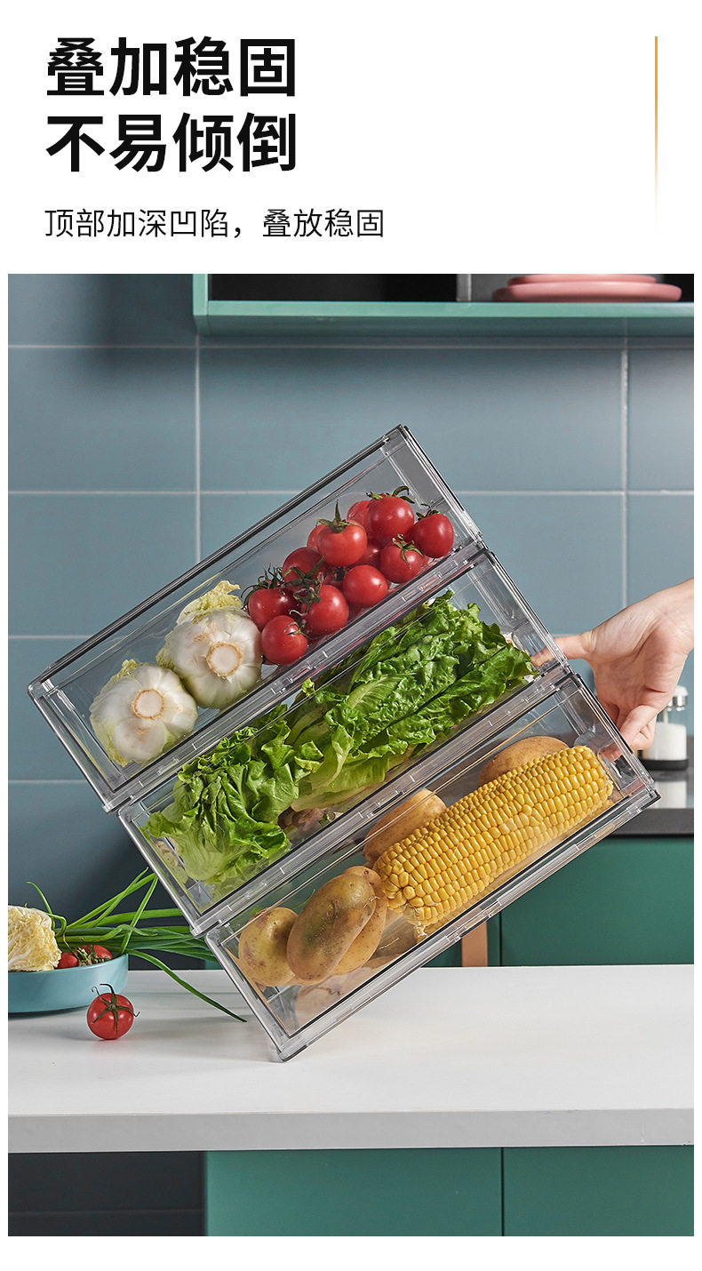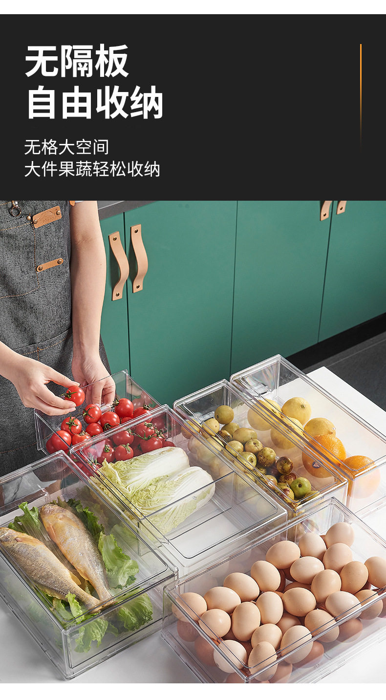 Refrigerator Storage Divider Storage Box Vegetable and Fruit Kitchen Preservation Box Transparent Organizer Storage Drawer Type for Home Use