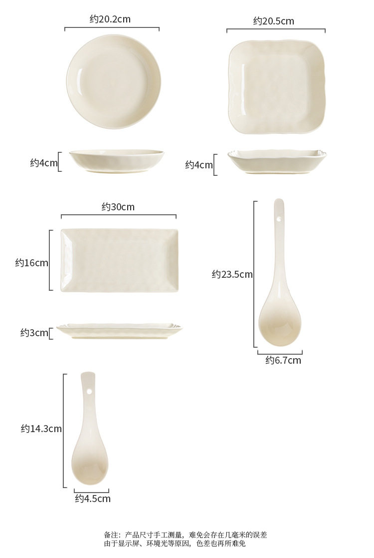 | Specifications | 4.5-inch hand bowl-creamy yellow,4.5 "Hand Pinch Bowl-Cream Green,4.5 "Hand Pinch Bowl-Purple,8 "Hand Pinch Disc-Cream Yellow,8 "Hand Pinch Disc-Cream Green,8 "Hand Pinch Disc-Purple,7 inch hand pinch disc-milk yellow,7 inch hand pinch disc-milk green,8 "Hand Pinch Square Plate-Milk Yellow,8 "Hand Pinch Square Plate-Cream Green,8 "Hand Pinch Square Plate-Purple,8 "Hand Soup Bowl-Milk Yellow,8 inch hand soup bowl-cream green,8 "Hand Pinch Soup Bowl-Purple,12 "Hand Pinch Square Plate-Milk Yellow,12 "Hand Pinch Square Plate-Milk Green,12 "Hand Pinch Square Plate-Purple,Hand Pinch Dish-Milk Yellow,Hand Pinch Dish-Milk Green,Hand Pinch Dish-Purple,6-inch hand-kneading bowl-milk yellow,6-inch hand-kneading bowl-milk green,7 inch hand soup bowl-cream green,7 "Hand Soup Bowl-Milk Yellow,7 "Hand Pinch Soup Bowl-Purple,12 "Binaural Hand Pinch Bowl-Milk Yellow,12 "Binaural Hand Pinch Bowl-Milk Green,12 "Binaural Hand Pinch Bowl-Purple,Small spoon-milk yellow,Small spoon-milk green,Small spoon-purple,tablespoon-milk yellow,tablespoon-cream green,Big Spoon-Purple,Ceramic Chopsticks-Rainbow,Ceramic Chopsticks-Orange,Ceramic Chopsticks-Brown,Fan plate 8-milk yellow,Fan plate 8-milk green,Fan plate 8-purple,Fan plate 8-milk yellow milk green,Fan plate 8-milk yellow purple,Large lard jar-cream yellow (with spoon),Large lard jug-cream green (with spoon),Large Lard Tank-Purple (with spoon),Medium lard jar-cream yellow (with spoon),Medium lard tank-cream green (with spoon),Medium Lard Tank-Purple (with spoon) |