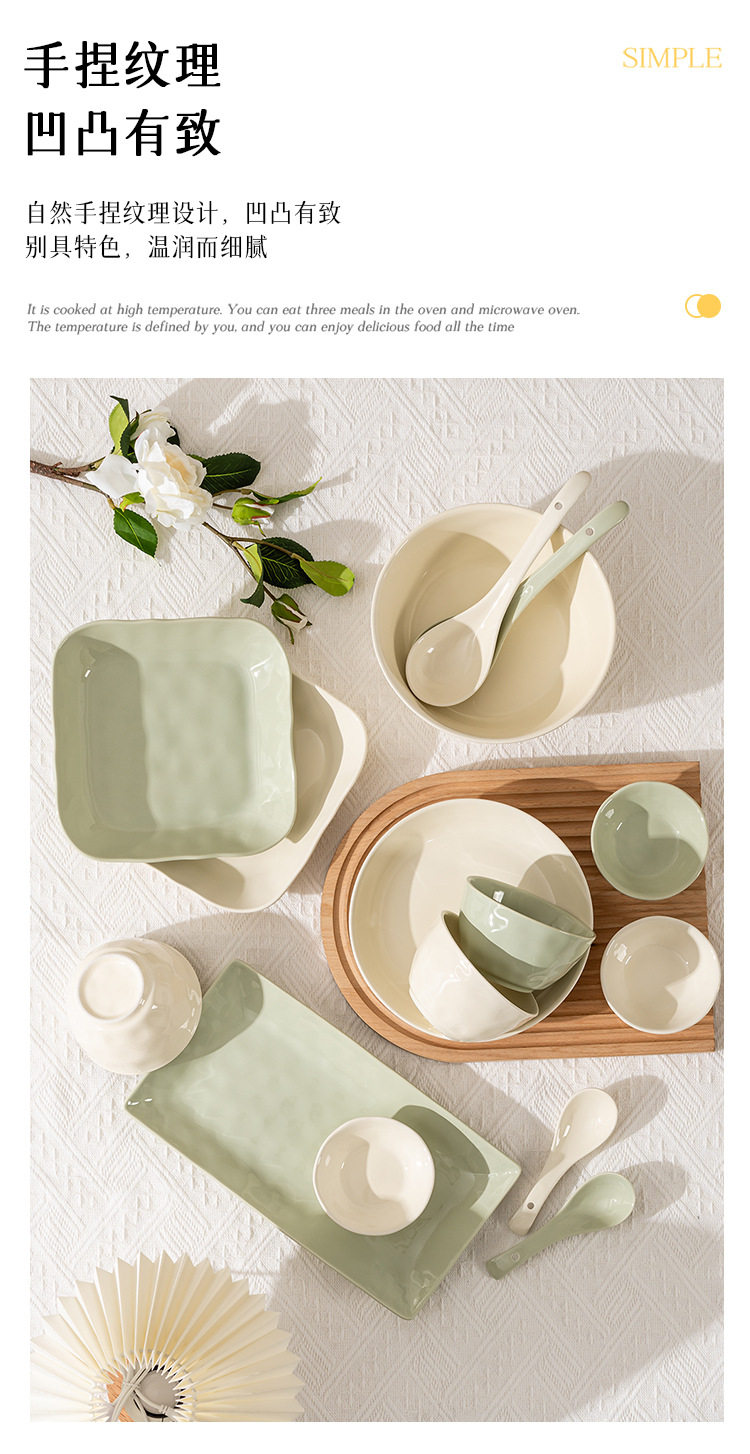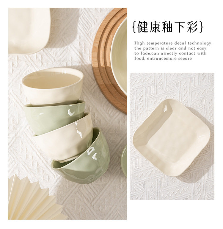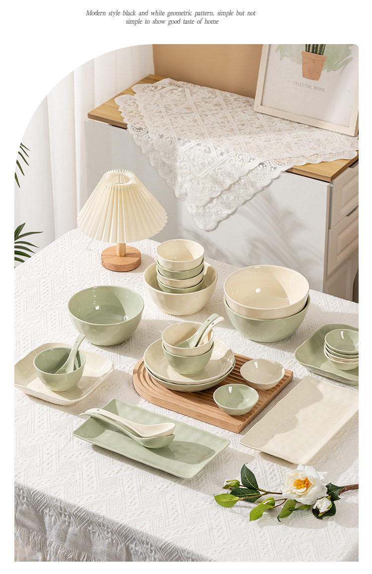 Light luxury ins cream style solid color ceramic household housewarming reunion Food Bowl plate high color soup bowl tableware