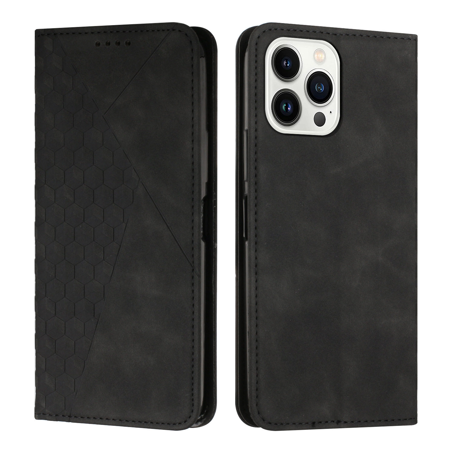 Suitable for Iphone16E Leather Case 15Plus Rhombus Skin-Feel Strong Magnetic Card Holder Wallet Protective Case 17Pro