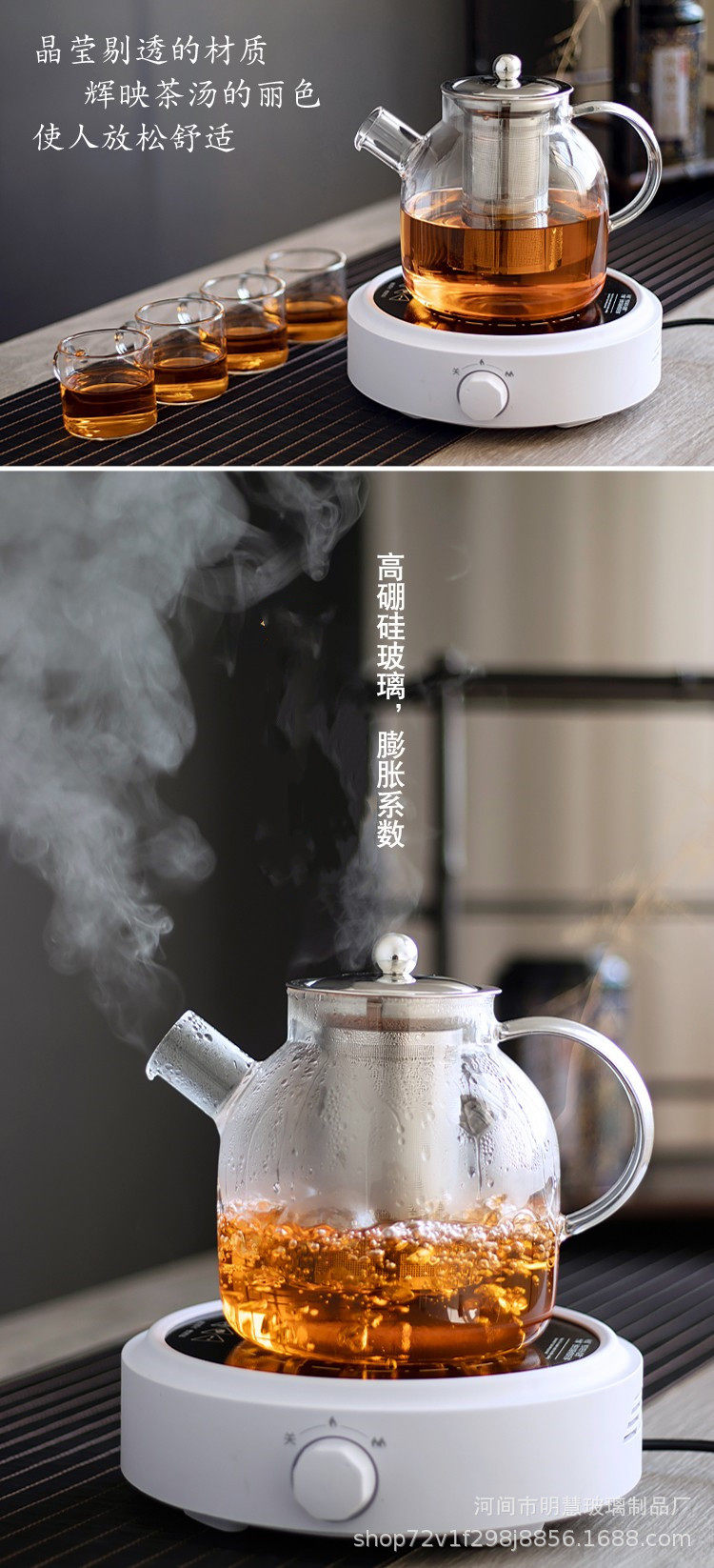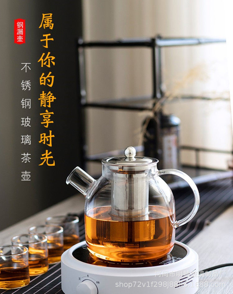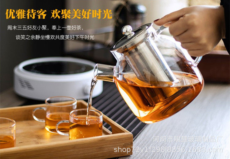 Simple transparent glass flower teapot stainless steel filter liner teapot electric ceramic stove heating boiling water teapot