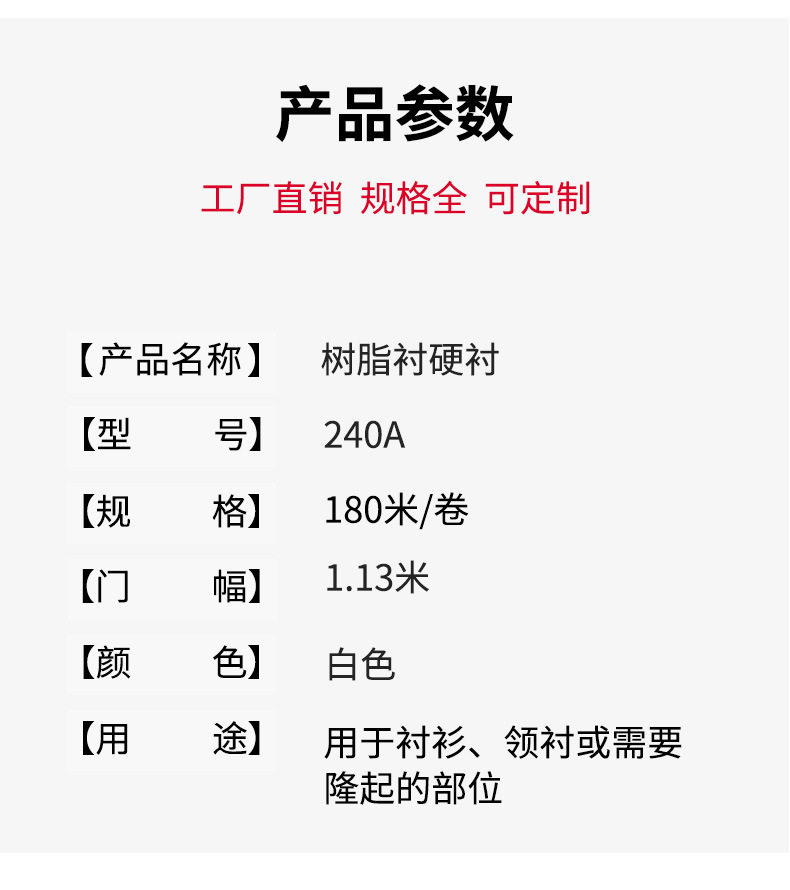 Resin lining 240A hard lining collar lining waist lining adhesive lining hot melt lining adhesive lining setting lining factory direct sales