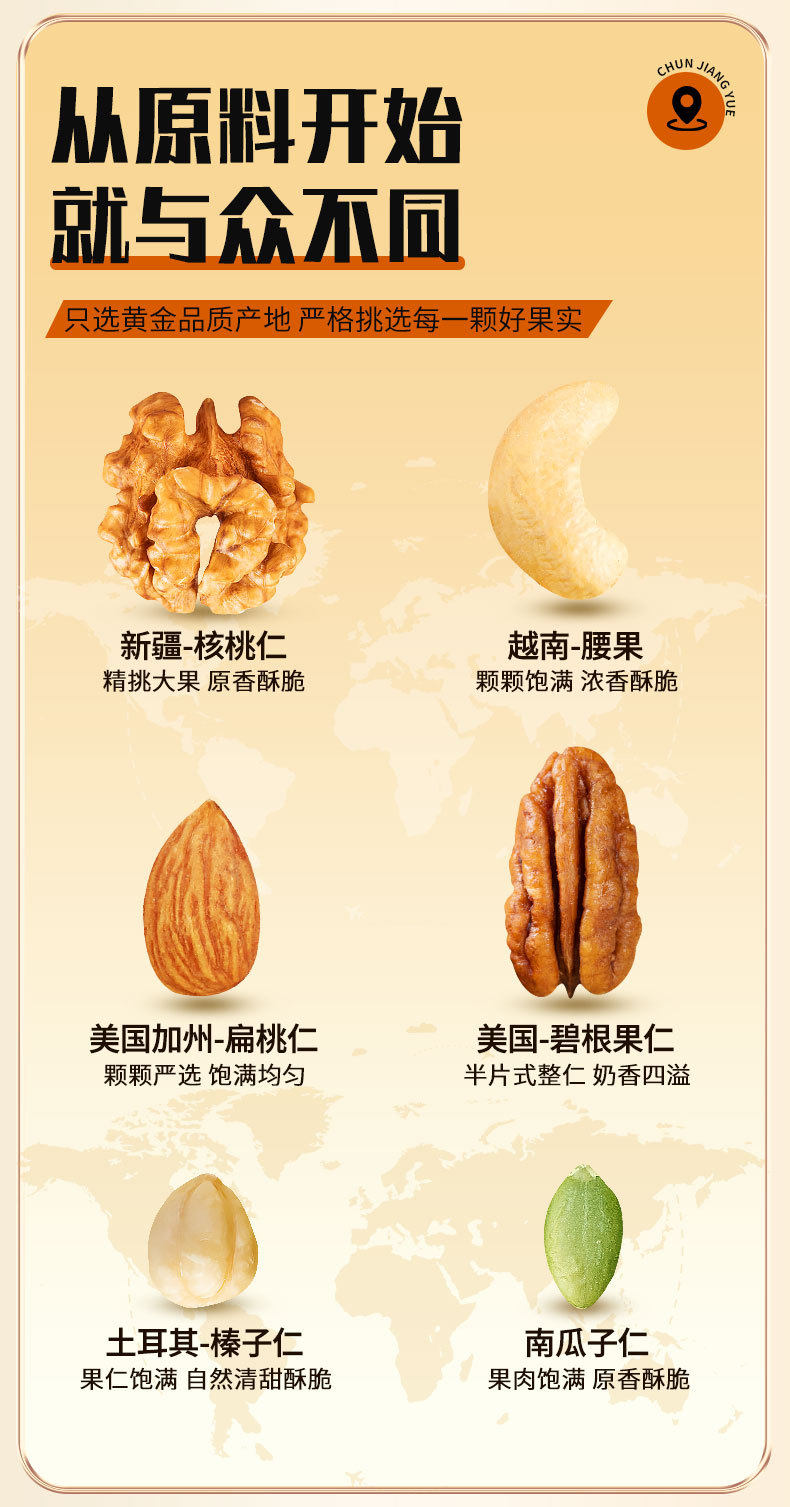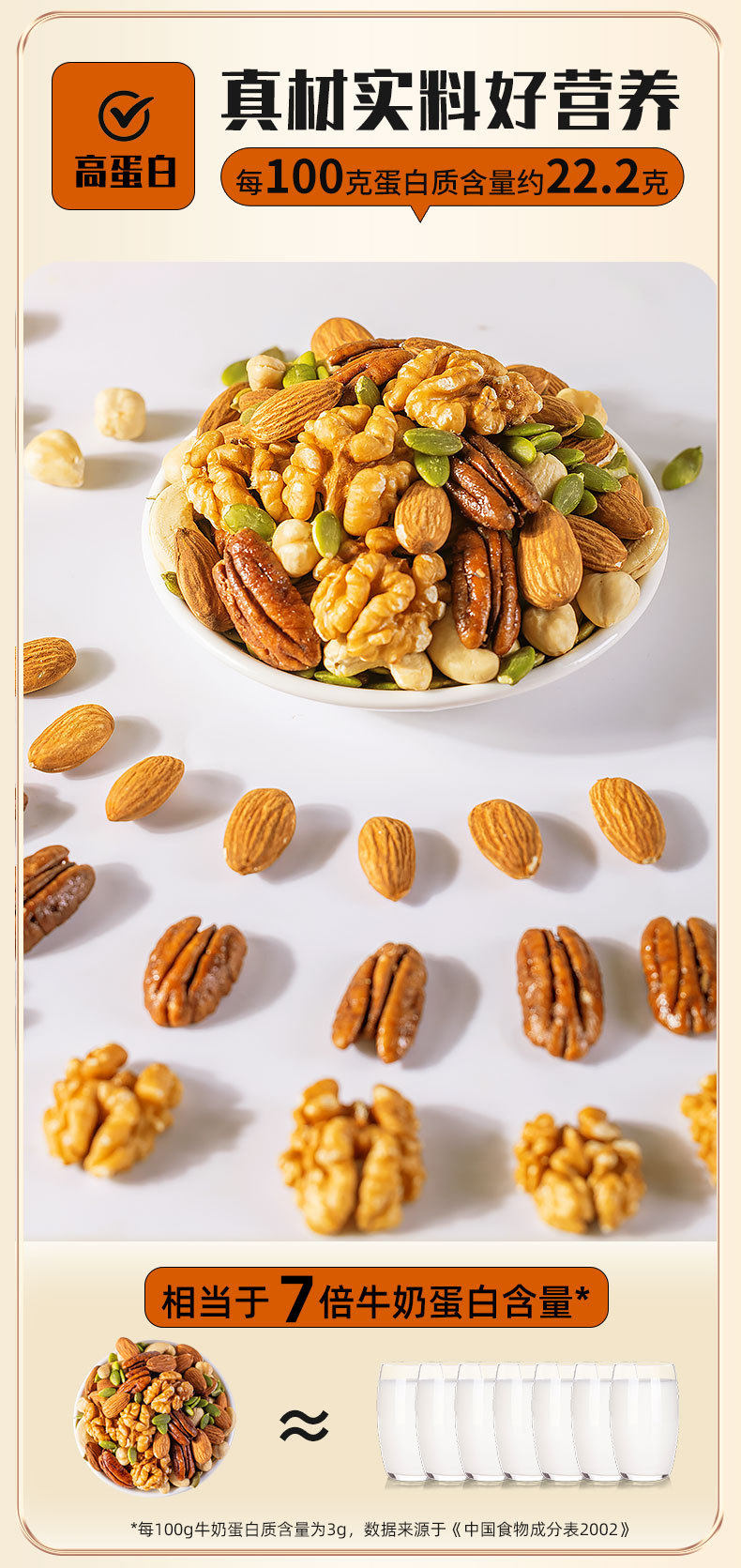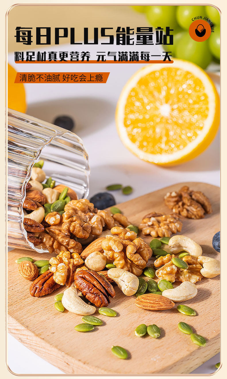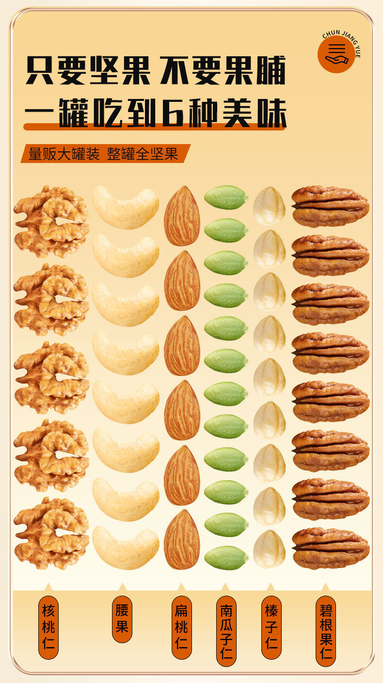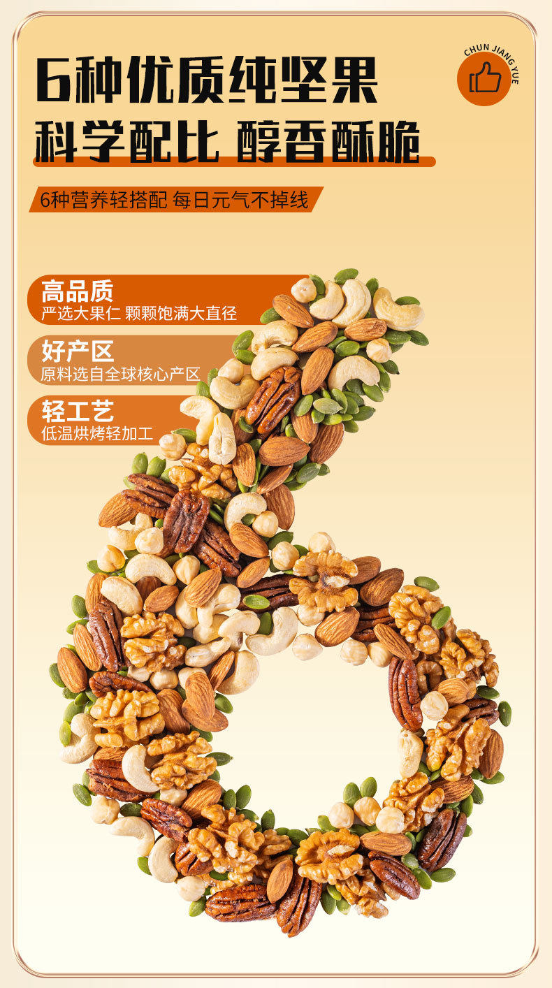 | Packaging specifications | [6 kinds of pure nuts] net weight 500g*1 can (0 additives) |