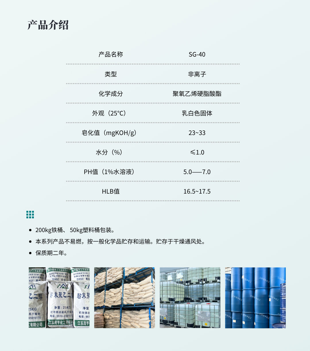 | Specifications | Stearic acid polyethylene ester sg-40 |