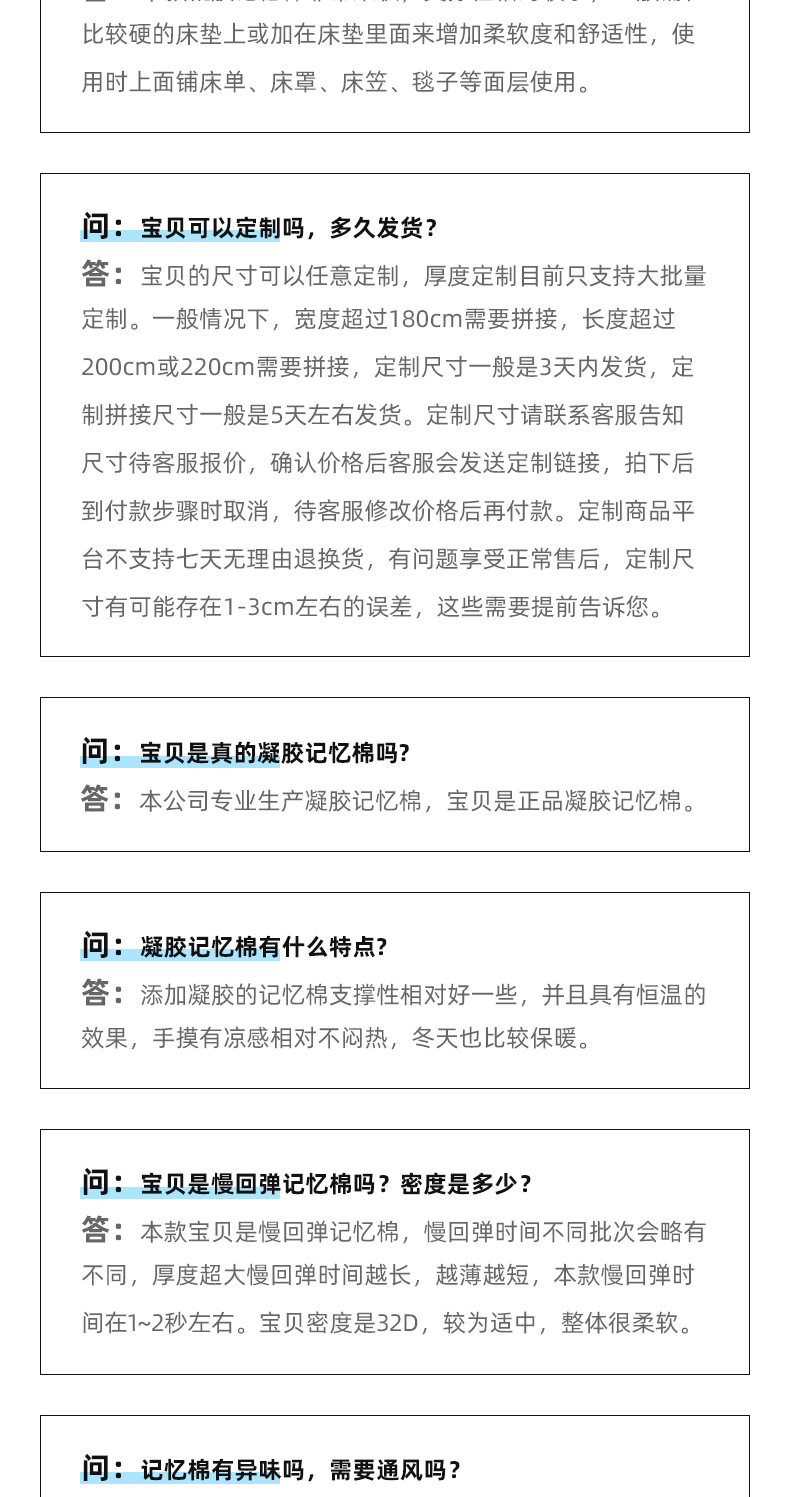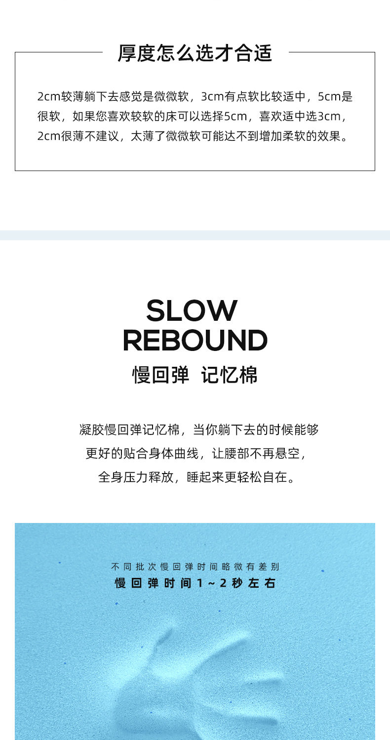 Dimensions 90*190*2cm,90*190*3cm,90*190*5cm,90*200*2cm,90*200*3cm,90*200*5cm,100*190*2cm,100*190*3cm,100*190*5cm,100*200*2cm,100*200*3cm,100*200*5cm,120*190*2cm,120*190*3cm,120*190*5cm,120*200*2cm,120*200*3cm,120*200*5cm,135*190*2cm,135*190*3cm,135*190*5cm,135*200*2cm,135*200*3cm,135*200*5cm,150*190*2cm,150*190*3cm,150*190*5cm,150*200*2cm,150*200*3cm,150*200*5cm,180*200*2cm,180*200*3cm,180*200*5cm,200*200*2cm,200*200*3cm,200*200*5cm,200*220*2cm,200*220*3cm,200*220*5cm,99cm * 190cm * 2cm (cross-border Twin Size),99cm * 203cm * 2cm (Cross-border X-long-Twin Size),137cm * 190cm * 2cm (Cross-border Full Size),153*203*2cm (cross-border Queen Size),198*203*2cm (cross-border King Size),182*213*2cm (cross-border CA King Size),99cm * 190cm * 3cm (cross-border Twin Size),99cm * 203cm * 3cm (Cross-border X-long-Twin Size),137cm * 190cm * 3cm (Cross-border Full Size),153*203*3cm (cross-border Queen Size),198*203*3cm (cross-border King Size),182*213*3cm (cross-border CA King Size),99cm * 190cm * 5cm (cross-border Twin Size),99cm * 203cm * 5cm (Cross-border X-long-Twin Size),137cm * 190cm * 5cm (Cross-border Full Size),153*203*5cm (cross-border Queen Size),198*203*5cm (cross-border King Size),182*213*5cm (cross-border CA King Size)