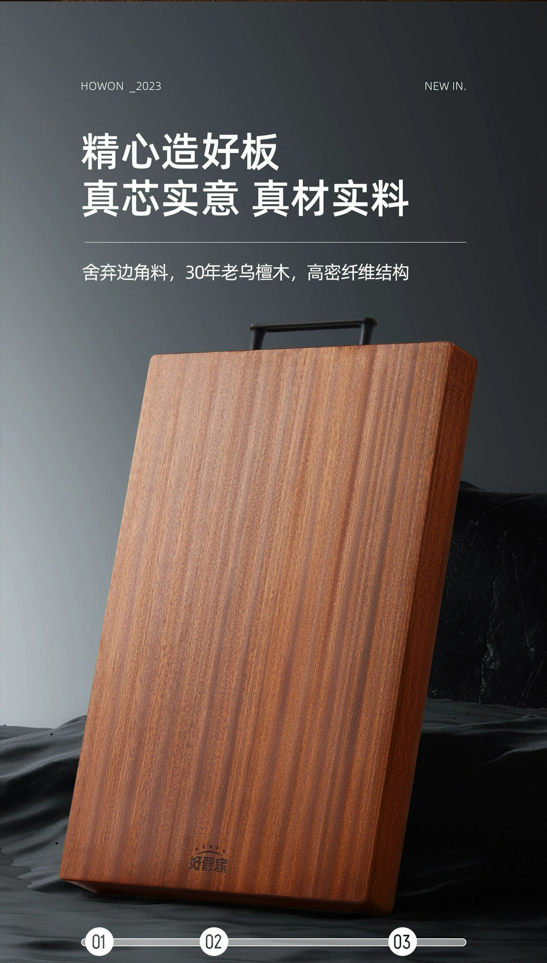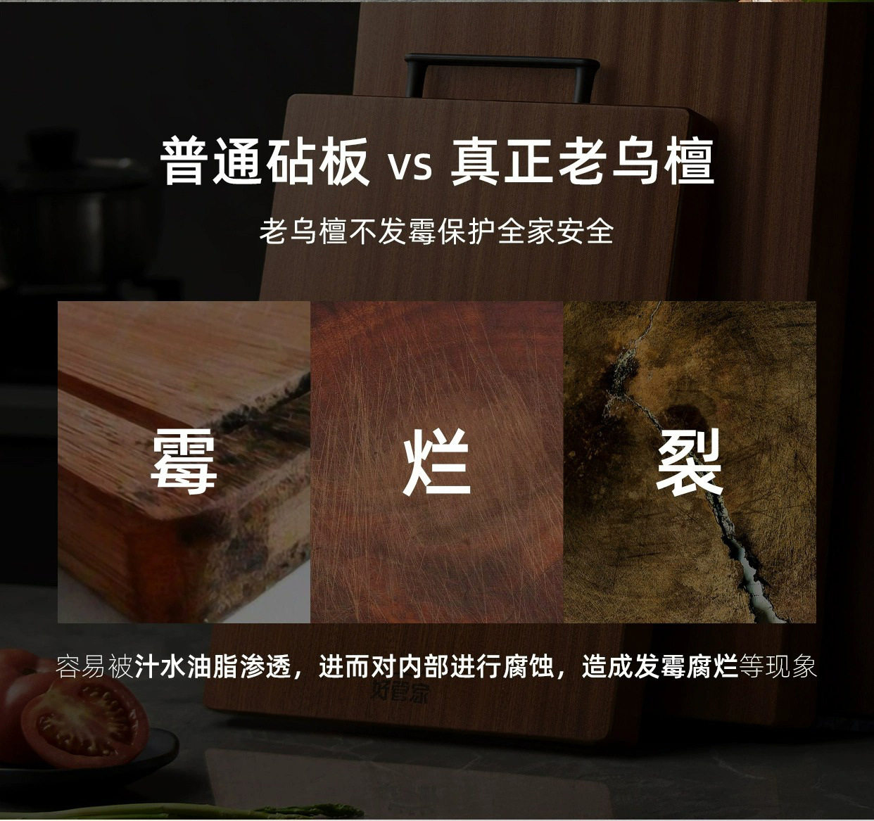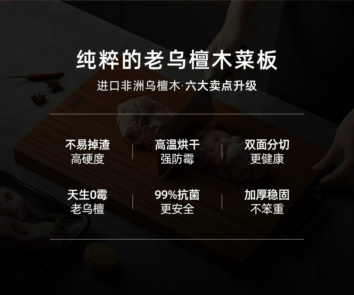 Good Housekeeper Black Sandalwood Cutting Board Antibacterial and Mildew-proof Household Cutting Board Fruit Cutting Board Black Gold Sandalwood Solid Wood Sticky Board Cutting Board