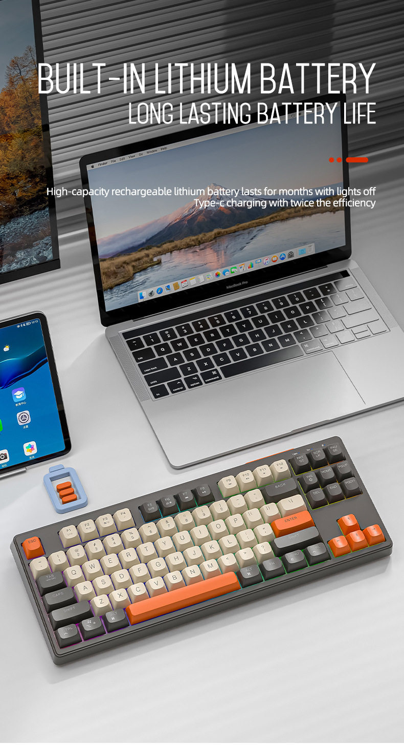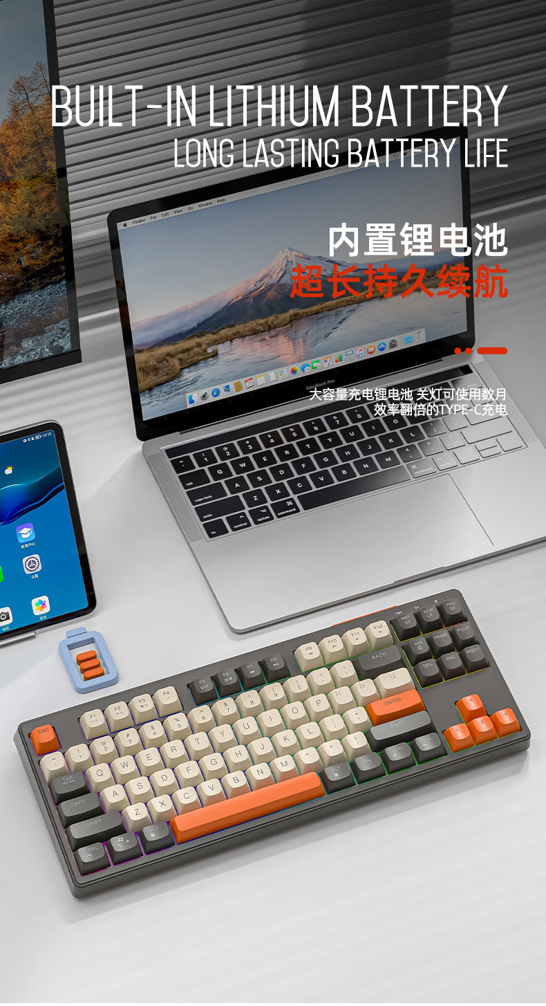 Free Wolf M87 Wireless Bluetooth Dual Mode Keyboard Pbt Ball Cap Office Gaming Luminous Keyboard Laptop