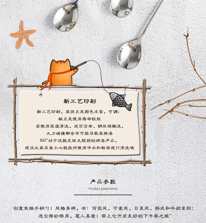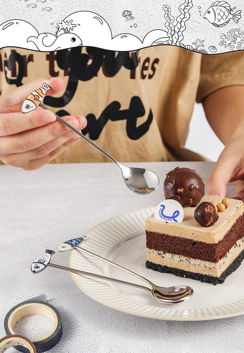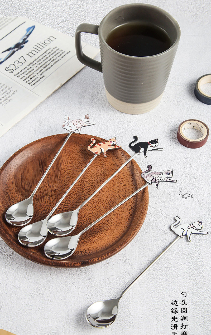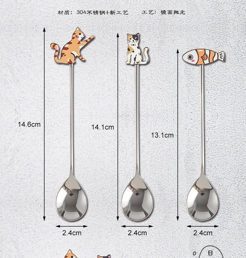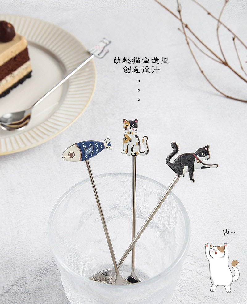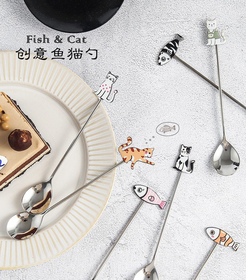 Creative 304 stainless steel cute fun fish cat Spoon restaurant dessert coffee spoon honey mixing spoon fruit fork