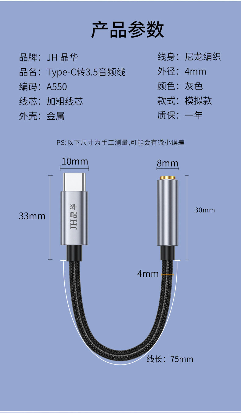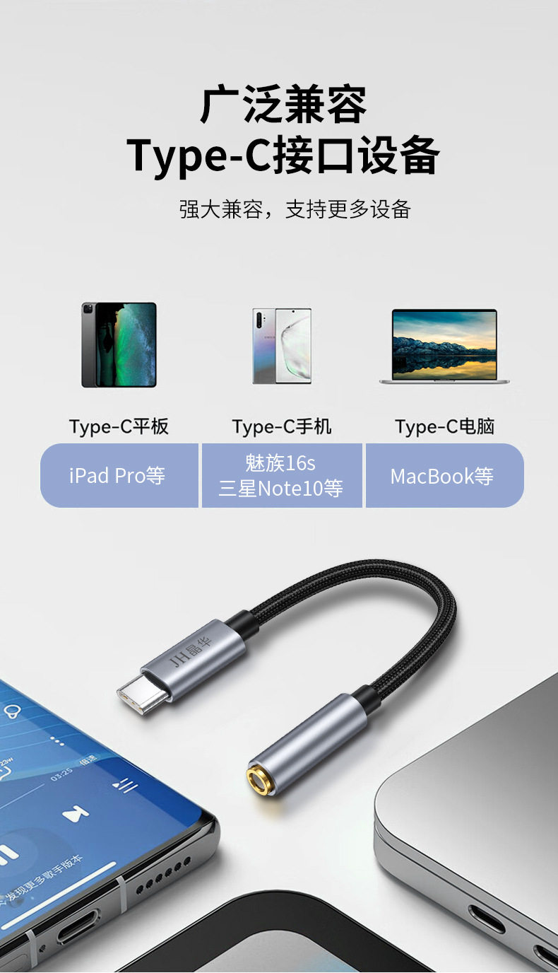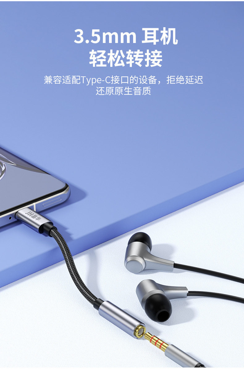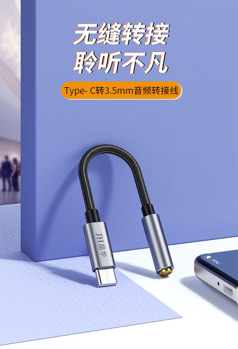 Jinghua typec to 3.5mm audio adapter cable listening to songs live call HIFI sound quality Android headset adapter