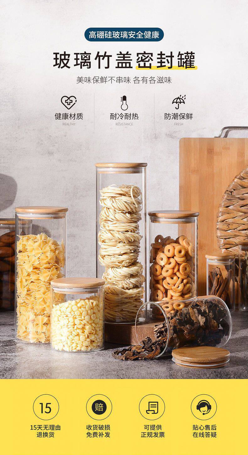 Sealed jar borosilicate glass food grade moisture-proof milk powder snack coffee tea storage large small size transparent kitchen