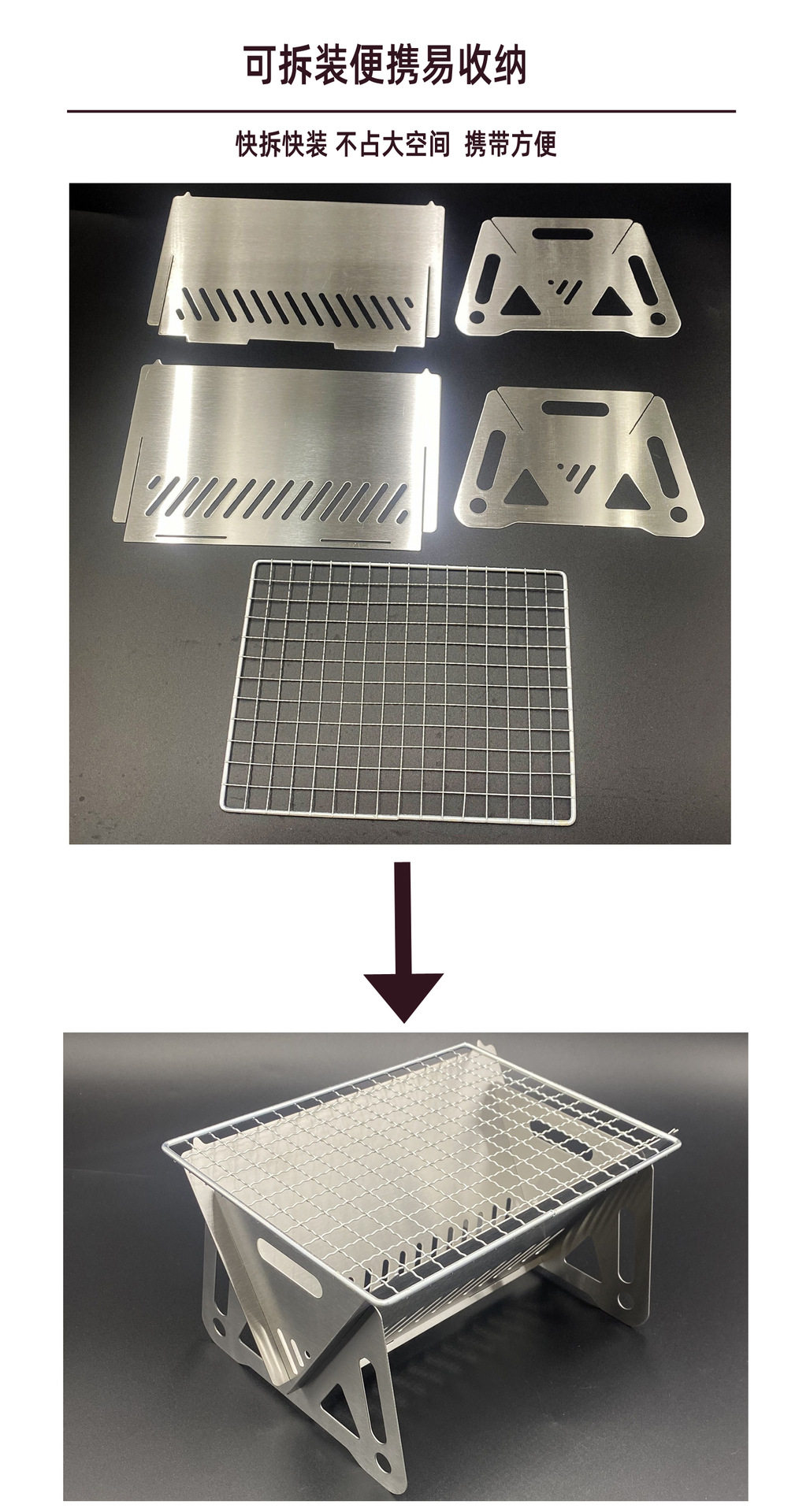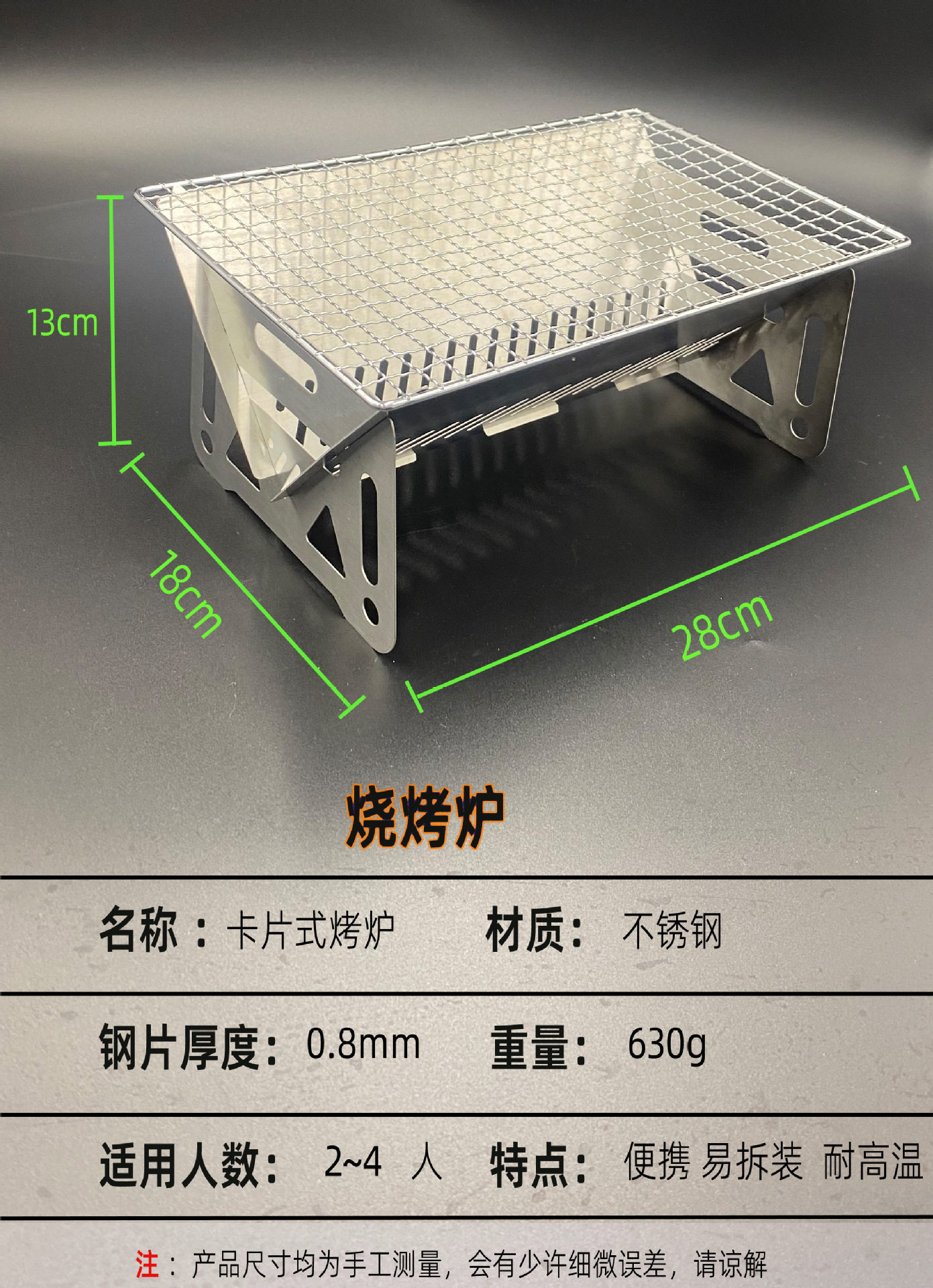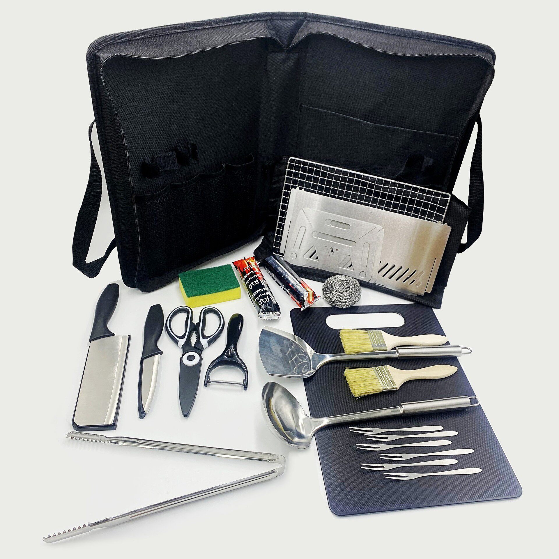 Outdoor Camping Stainless Steel Grill Picnic Set 15-Piece Portable Knife, Scissors, Spatula, Spoon, Charcoal Grill Portable