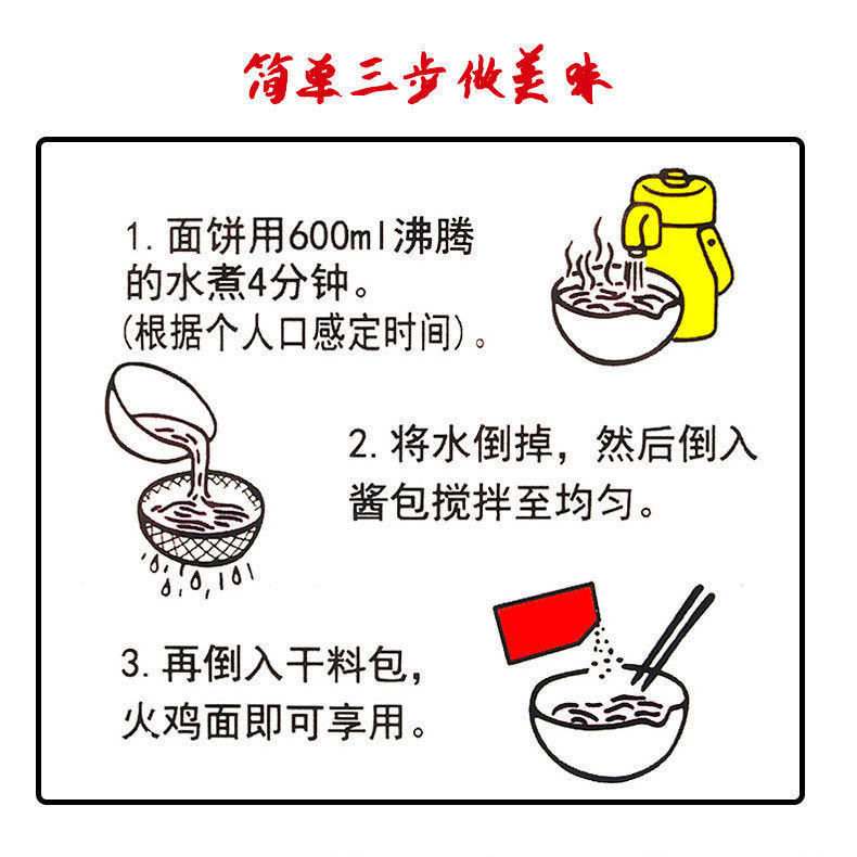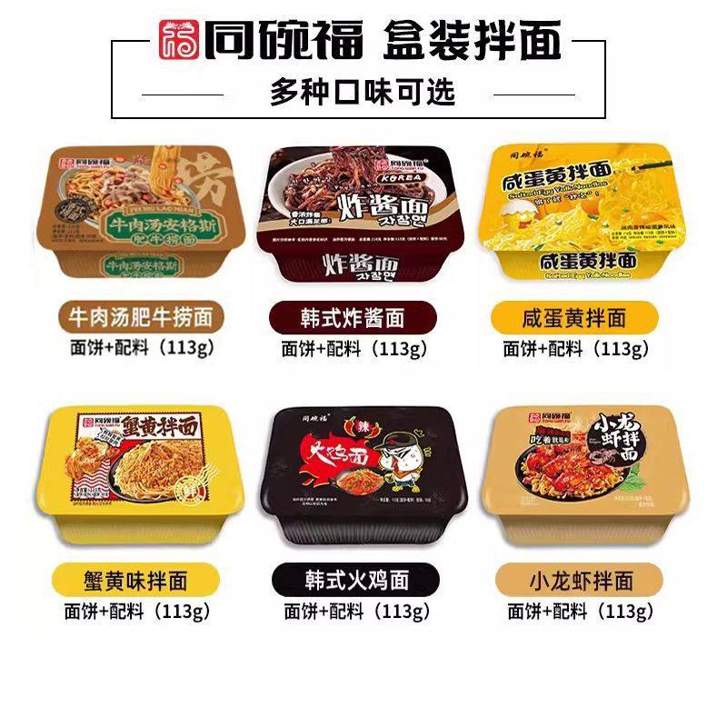 | Packaging specifications | Turkey noodles 116g/bag,Fried noodles 116g/bag,Ghost pepper noodles 112g/bag,Crayfish noodles 116g/bag,Scallion oil noodles 116g/bag,Cream cheese turkey noodles 116g/bag,Crab roe noodles 116g/bag,Wuhan hot dry noodles 116g/bag,Salted egg yolk noodles 116g/bag,Fat beef noodles 116g/bag,Boxed turkey noodles 113g/box,Boxed fried noodles 113g/box,Boxed crab roe noodles 113g/box,Boxed crayfish noodles 113g/box,Boxed salted egg yolk noodles 113g/box,Boxed fat beef noodles 113g/box,Barrel of ghost pepper noodles 80g/barrel,Boxed italian noodles,Boxed wuhan hot dry noodles |