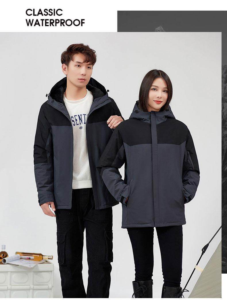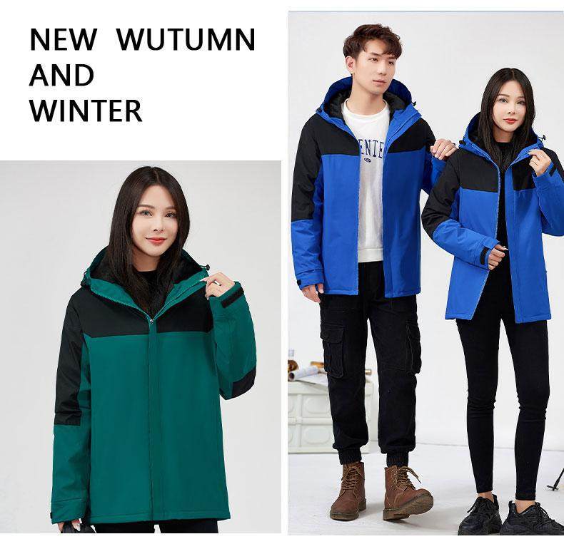 Fleece-Lined Windproof and Waterproof Thickened Jacket with Custom Logo Printing, Workwear, Three-In-One Printed Men's Coat, Warm