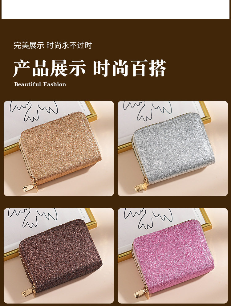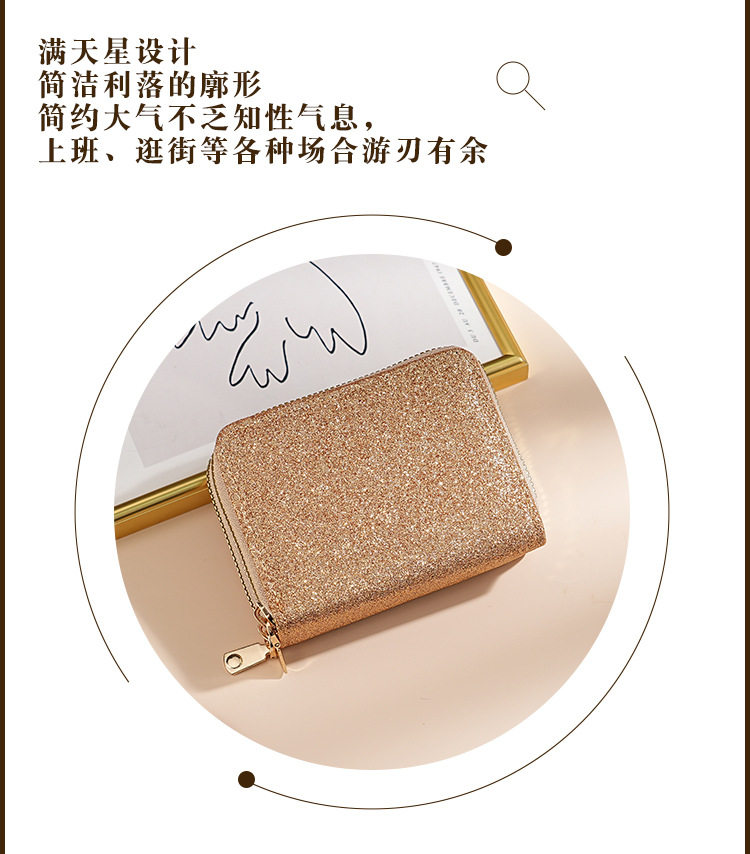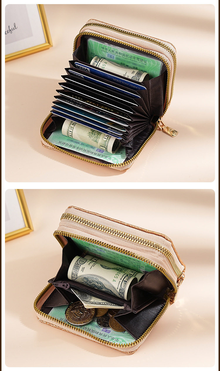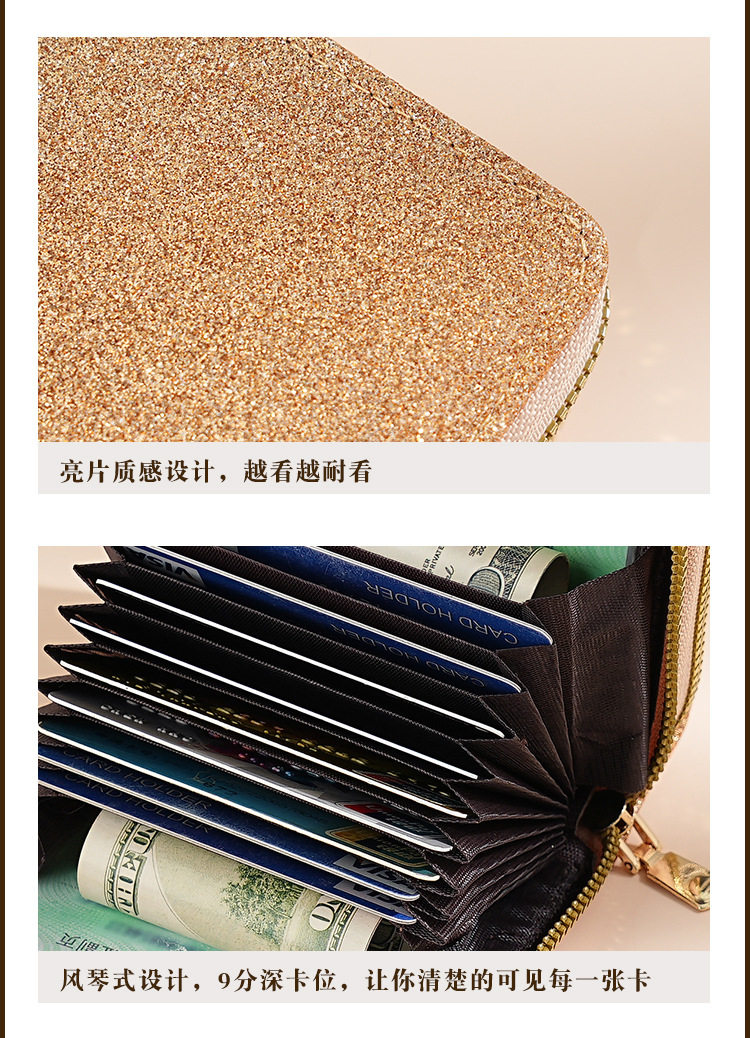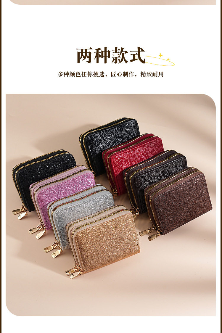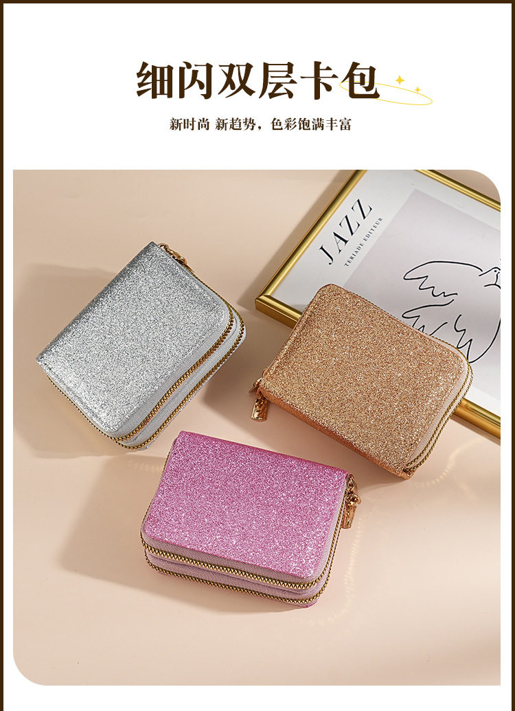 Cross-Border Women's Double Zipper Accordion Card Holder Starry Glitter Card Holder Multi-Card Slot Id Bag Fashionable Women's Bag