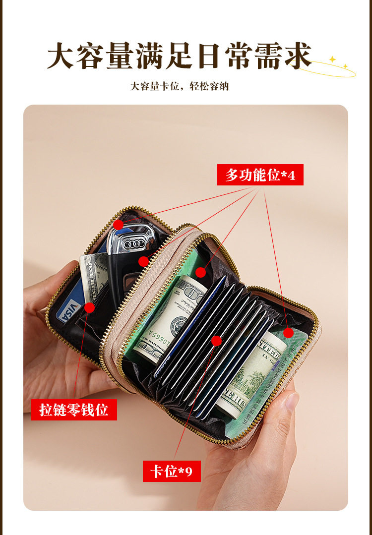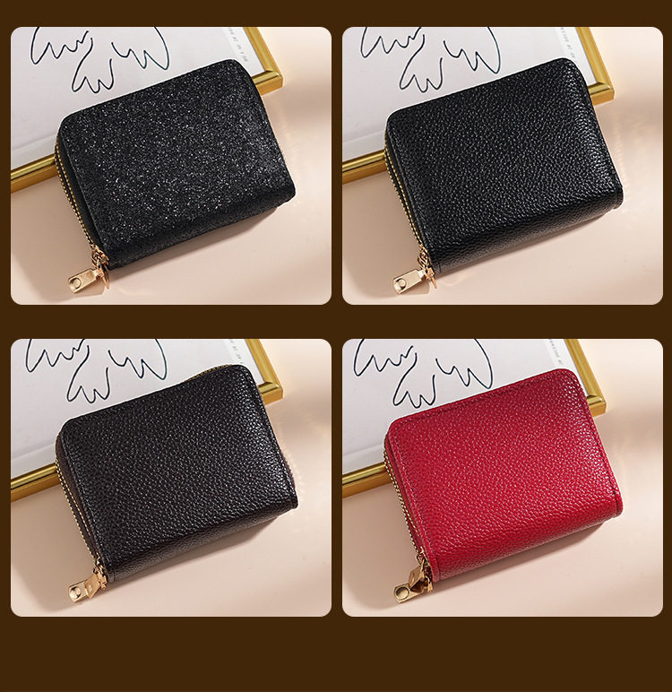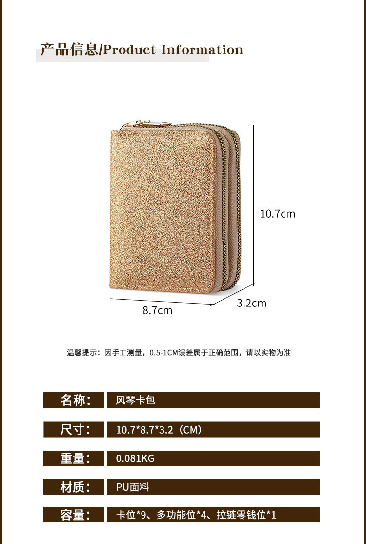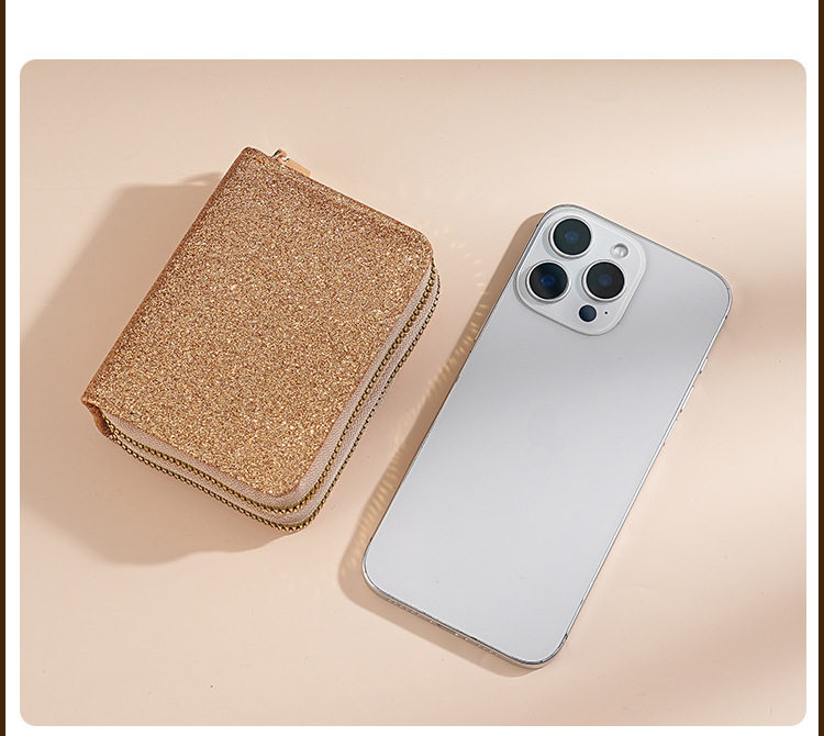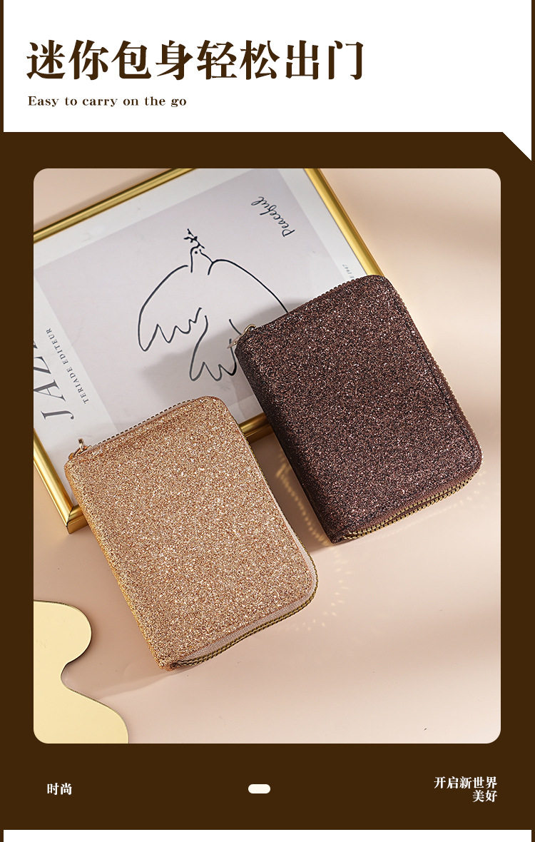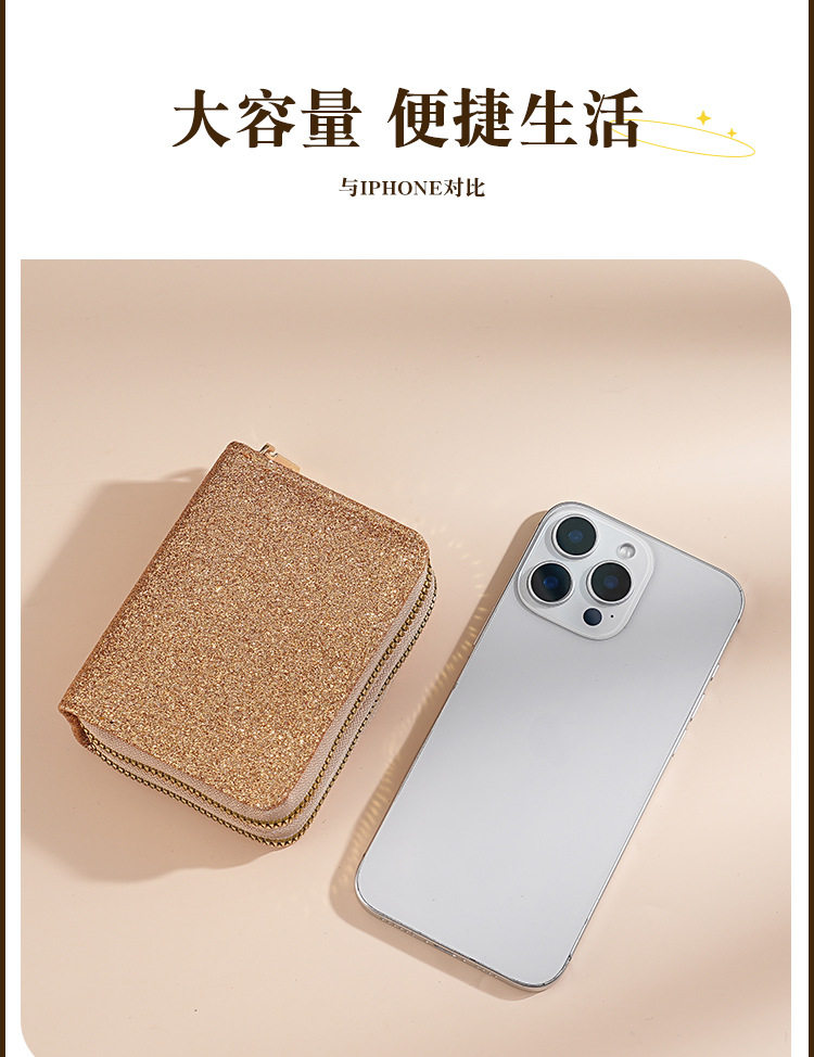 Cross-Border Women's Double Zipper Accordion Card Holder Starry Glitter Card Holder Multi-Card Slot Id Bag Fashionable Women's Bag