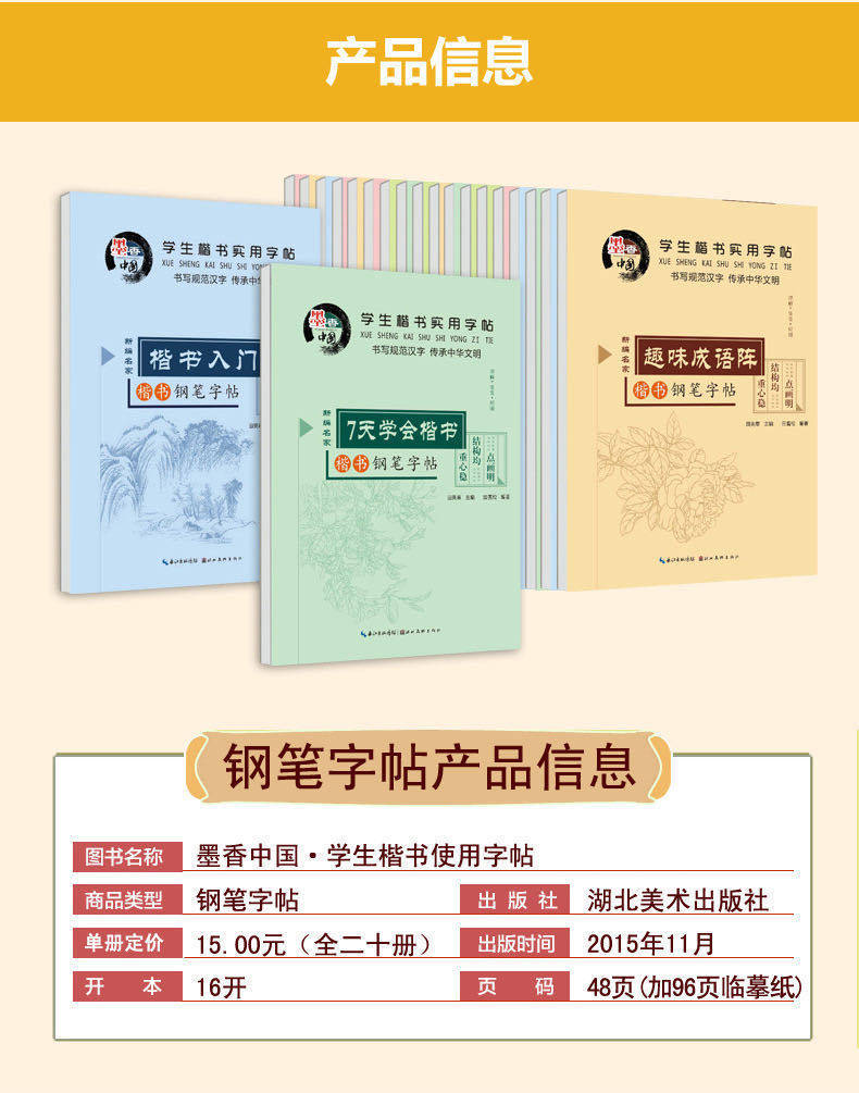 | Specifications | 7 days to learn regular script,3500 common Chinese characters,Roland Xiaoyu,Famous words,Youth message,Fun idioms,Interesting idiom array,Three-Character Sutra,Three hundred Song Poems,Wang Guozhen's poems,Primary school students must recite ancient poetry,Ai-Ling Zhang's witticism,Middle school students must recite ancient poems |