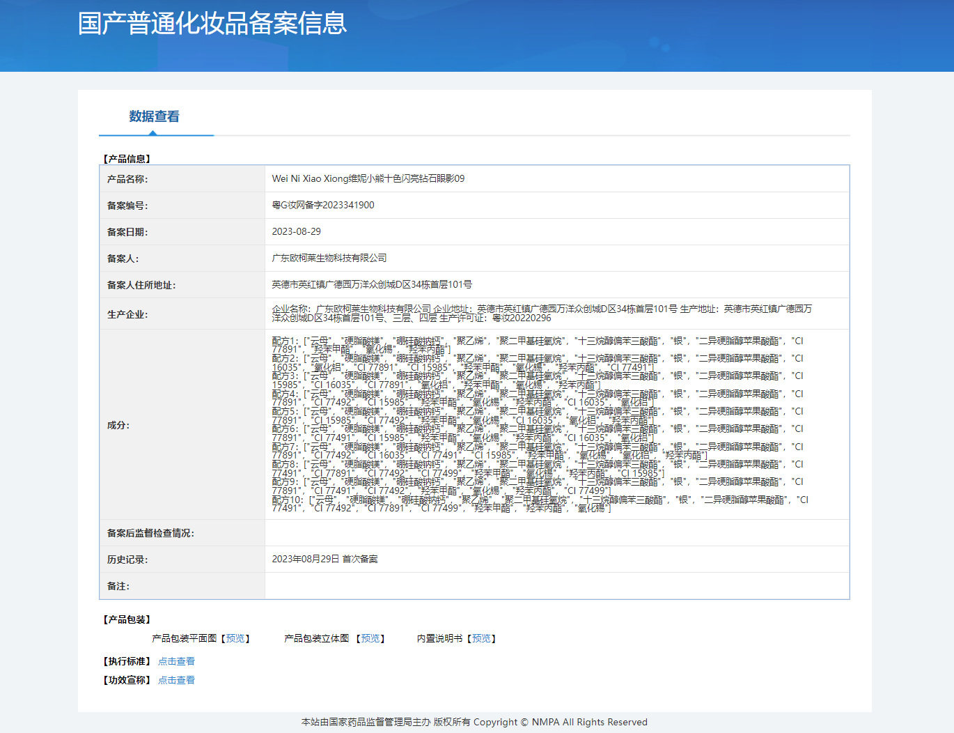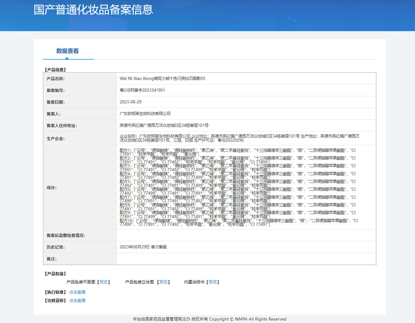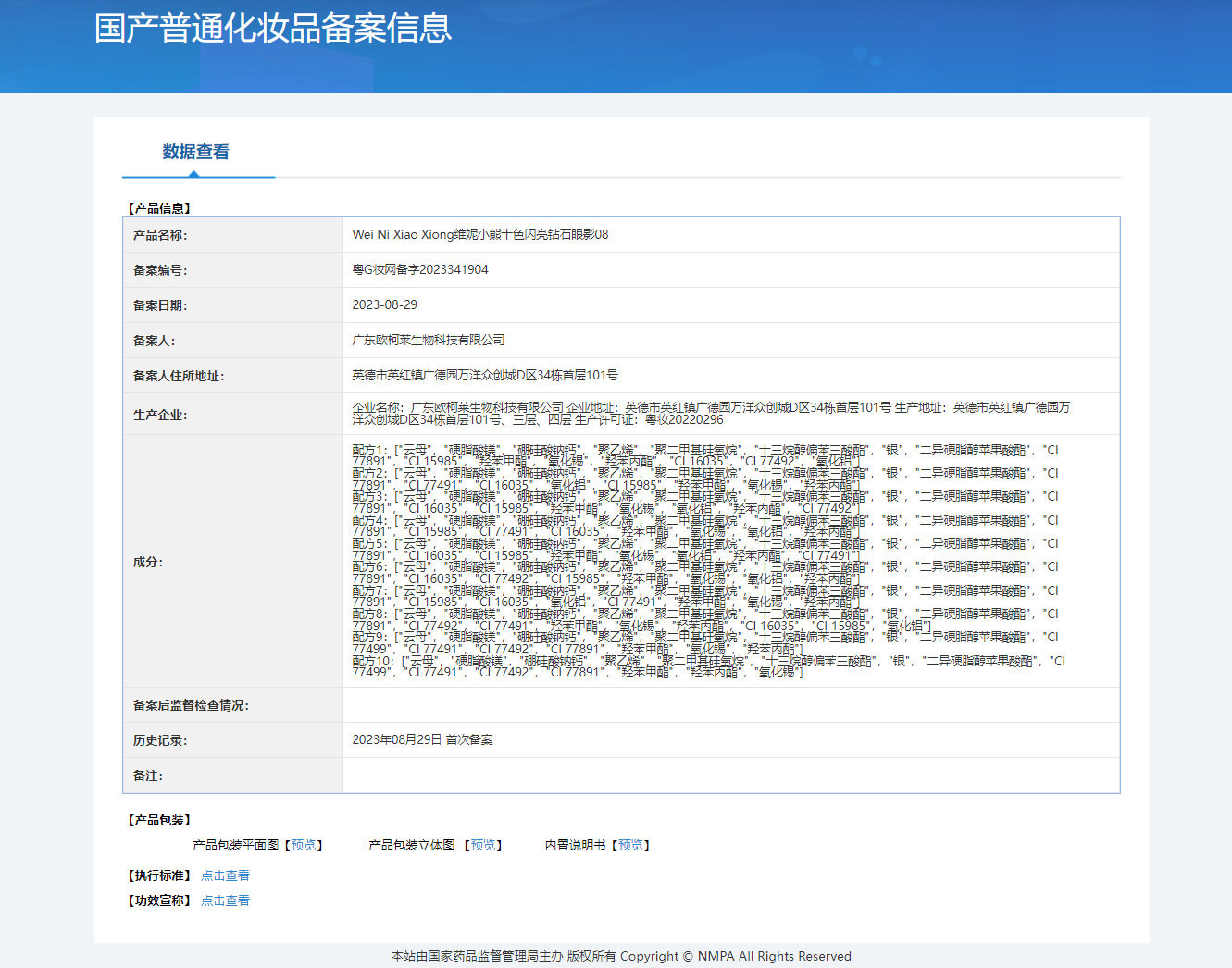 | Production license number | Cantonese makeup 20220296 |