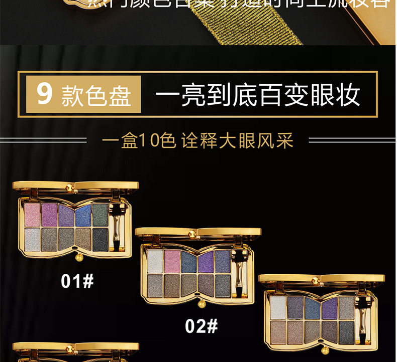| color classification | 1# pink dark green gemstone blue,2# pink noble purple brown (domestic not shipped),3# ink blue purple champagne,4# sapphire blue noble purple khaki (domestic not shipped),5# smoke makeup nude black,6# nude natural nude makeup color,7# rose red wine red nude,8# mermaid Ji grapefruit color peach blossom makeup,09# Sunset Yellow Mermaid Ji wine red,10# Joker Milk Tea Color System (Not Deliverable in China) |