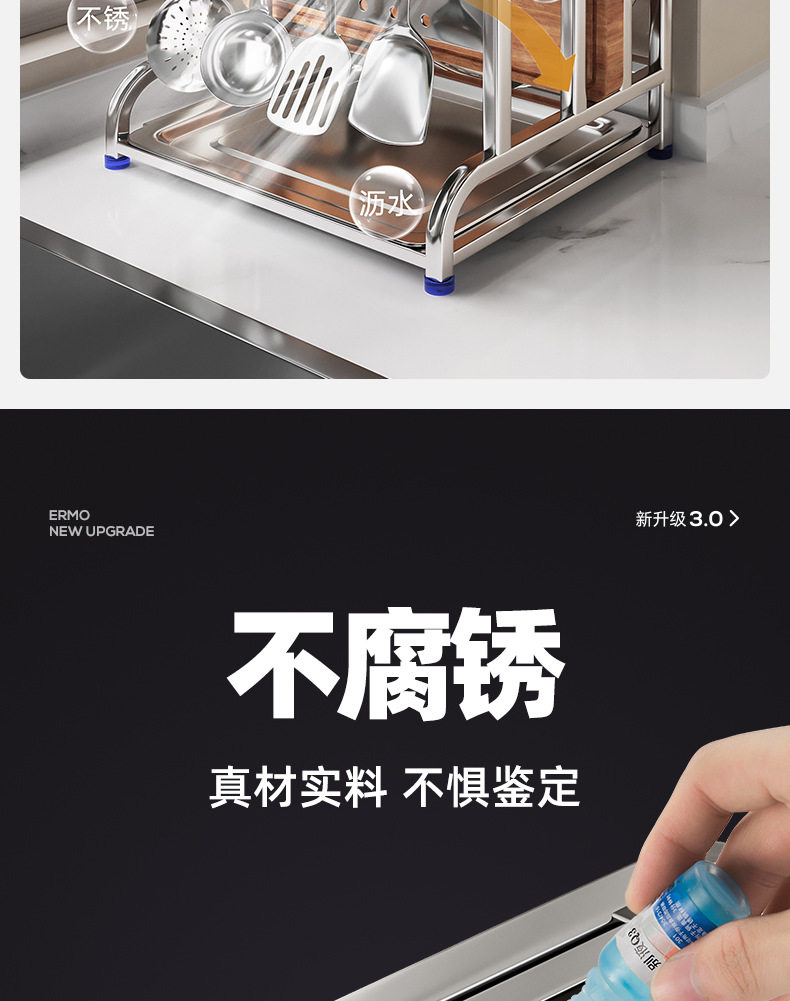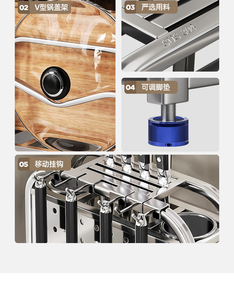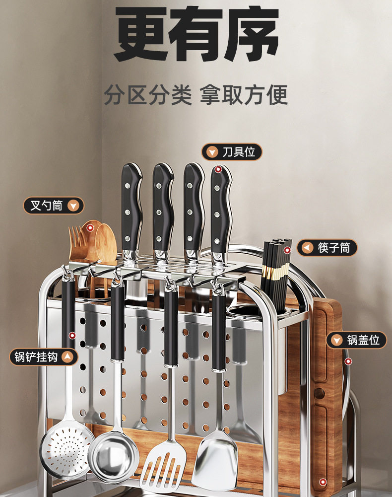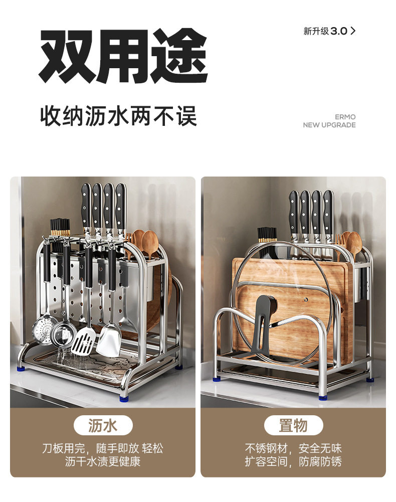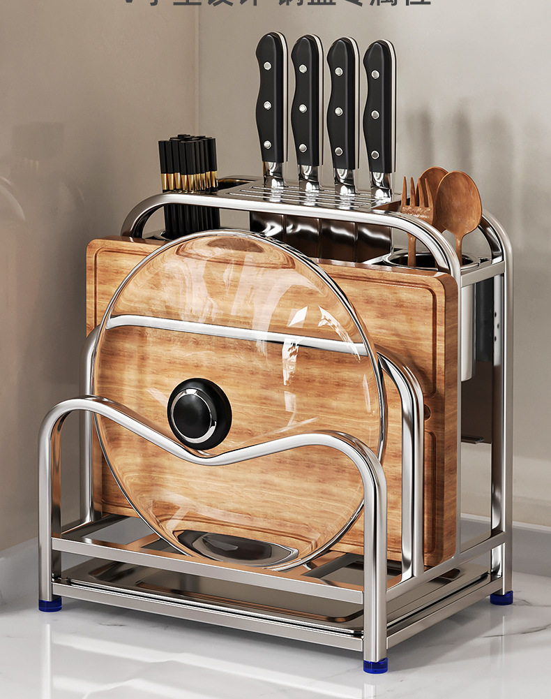 304 stainless steel kitchen knife rack storage rack multi-functional pot cover chopping board countertop draining knife cutting board storage rack