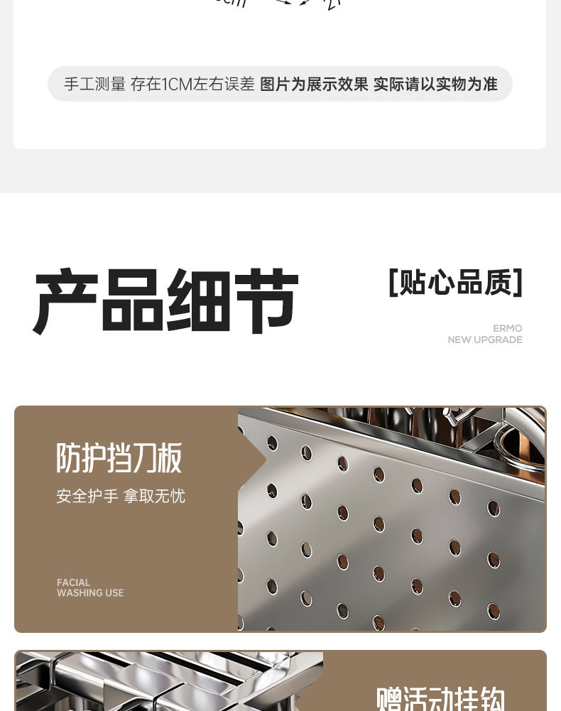 | Color | Original color standard set [double chopstick holders + cutting board rack],Primary Color Upgrade [Knife Guard Double Chopsticks Chopping Board Rack]],Primary Color Upgrade Height [Knife Guard Board Double Chopsticks Chopping Board Rack]],Primary Color Upgrade Height Widening [Knife Guard Double Chopsticks Chopping Board Rack]],Primary Color Upgrade Height Widening [Knife Guard Double Chopsticks Chopping Board Rack Pot Cover Rack]],Primary Color Upgrade Height Widening [Knife Guard Board Double Chopsticks Holder Double Chopping Board Rack]],Black minimalist style [double chopstick holder + cutting board holder],Black [knife guard plate double chopsticks chopping board rack]],Black * heighening [knife guard double chopsticks chopping board rack]],Black * raised and widened [knife guard board double chopsticks chopping board rack]],Black * Heightened and Widened [Knife Guard Double Chopsticks Chopping Board Rack Pot Cover Rack]],Black * heightened and widened [knife guard double chopstick holder double chopping board rack]],Gun gray [knife guard plate double chopsticks chopping board rack]],Gun gray * heightened [knife guard plate double chopsticks chopping board rack]],Gun gray * raised and widened [knife guard board double chopstick holder chopping board rack]],Gun gray * heightened and widened [knife guard plate double chopsticks chopping board rack pot cover rack]],304 extended D section with baffle,304 long with baffle,304 drip-tight with bezel,304 double chopping board with baffle heart-shaped,304 drip-proof double chopping board position |