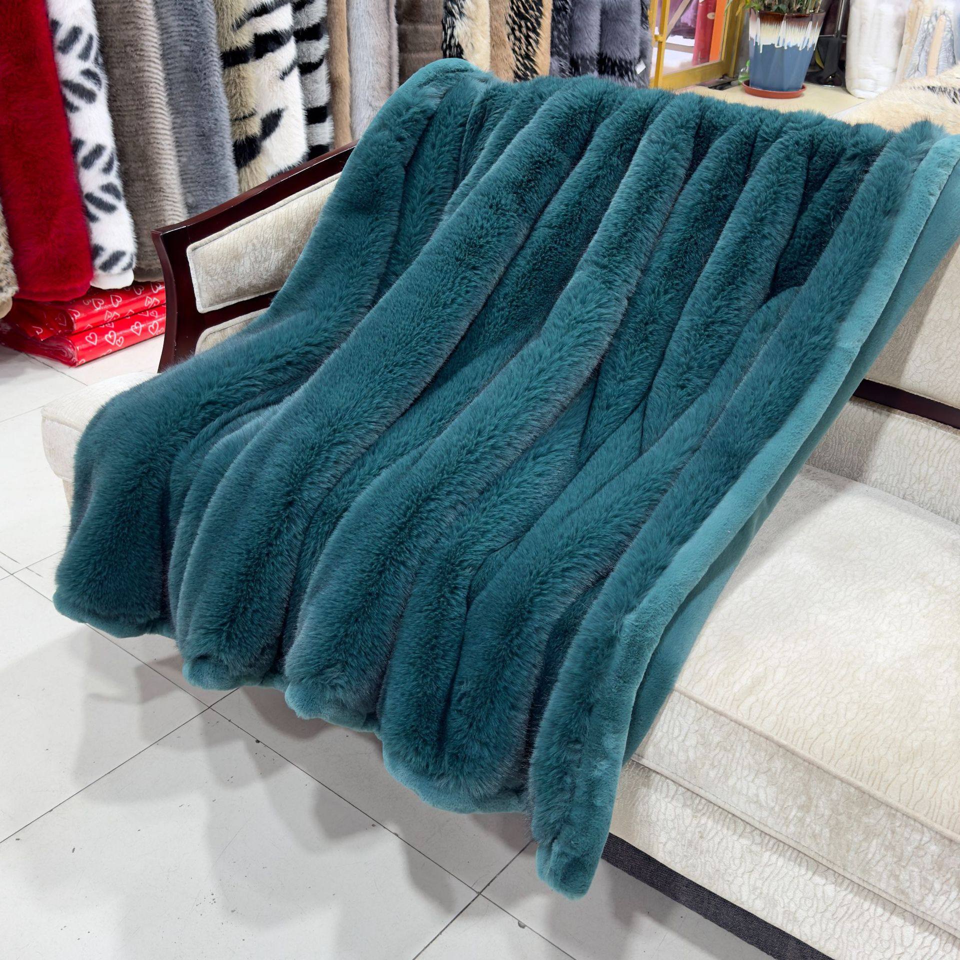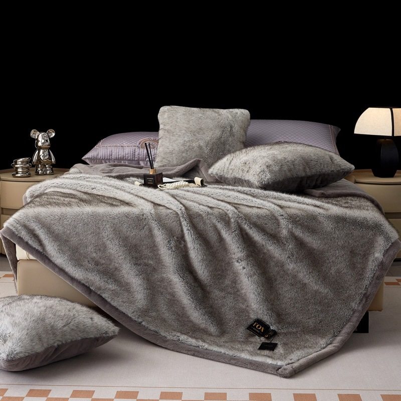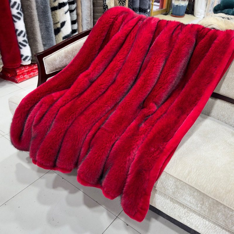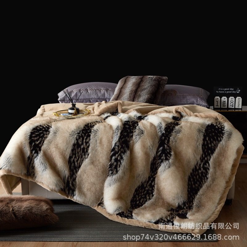 2024 New Gold Fox Fur Blanket Ralph Lauren Luxury Blanket Foreign Trade Raschel Blanket Faux Fox Blanket