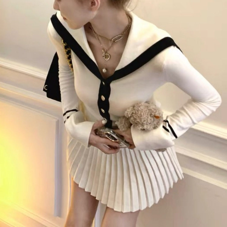 Autumn two-piece skirt Autumn New Navy style knitted waist-tight fashion suit women's clothing small early autumn