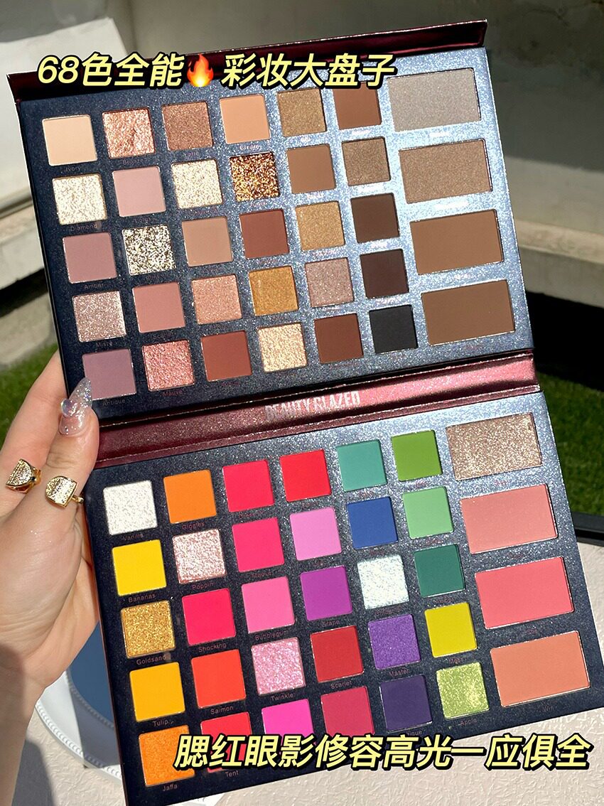 Beauty glazed 68 color eye shadow makeup high gloss blush one plate children's stage makeup multi-functional makeup