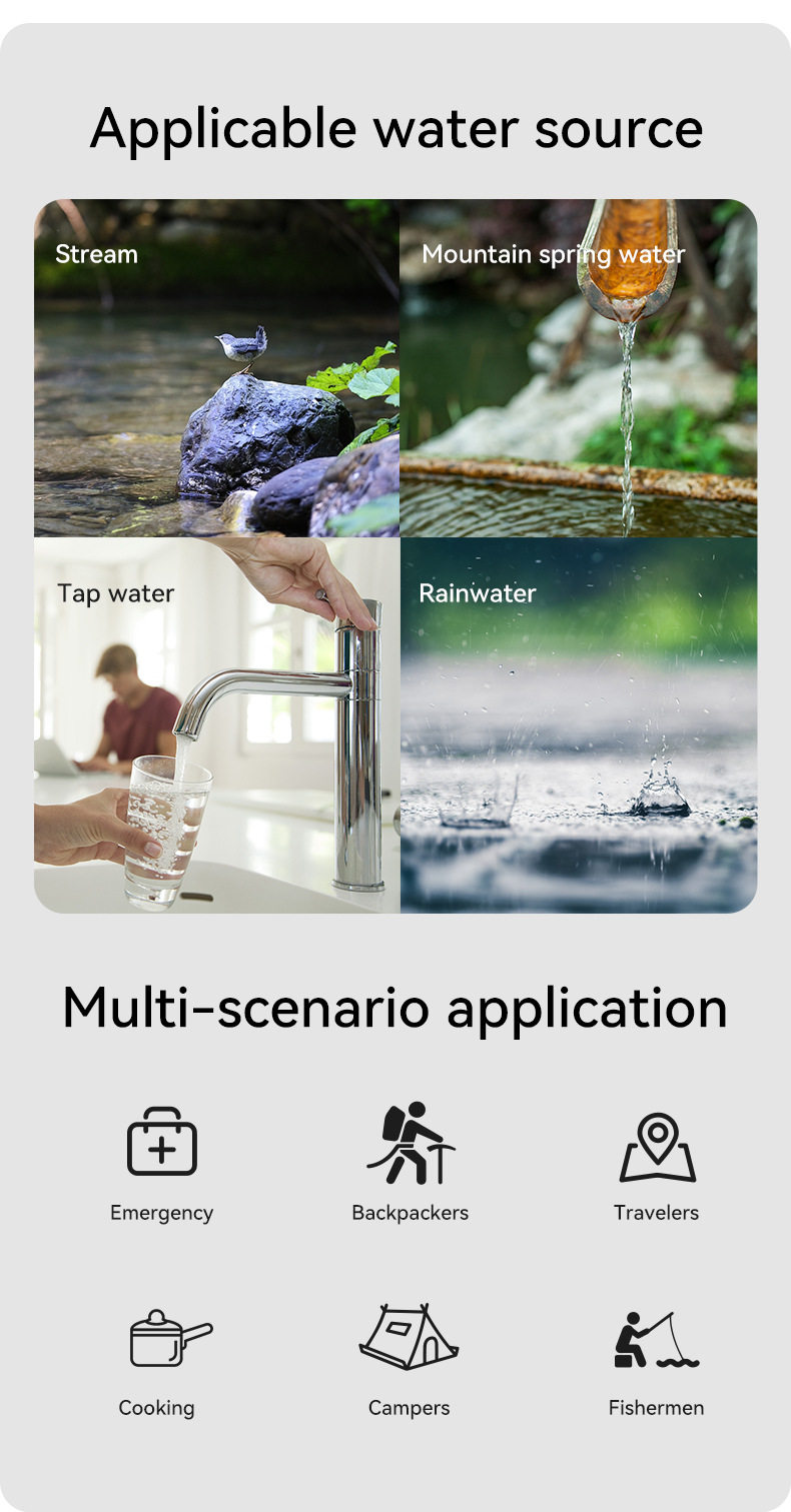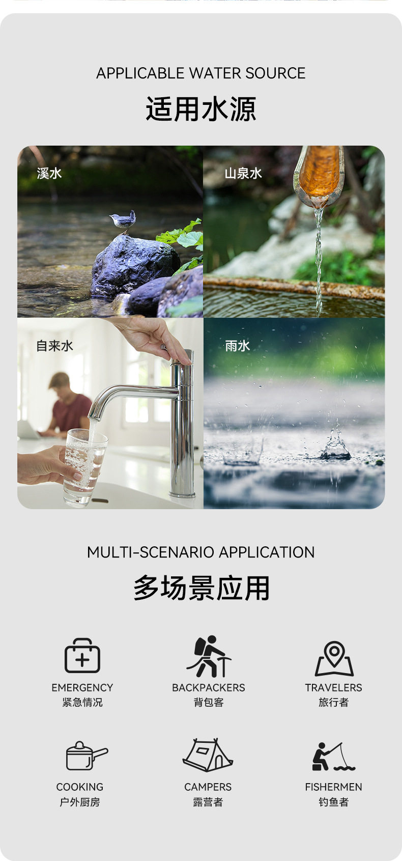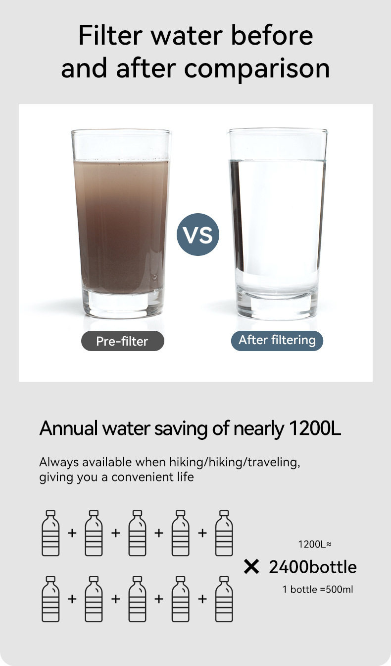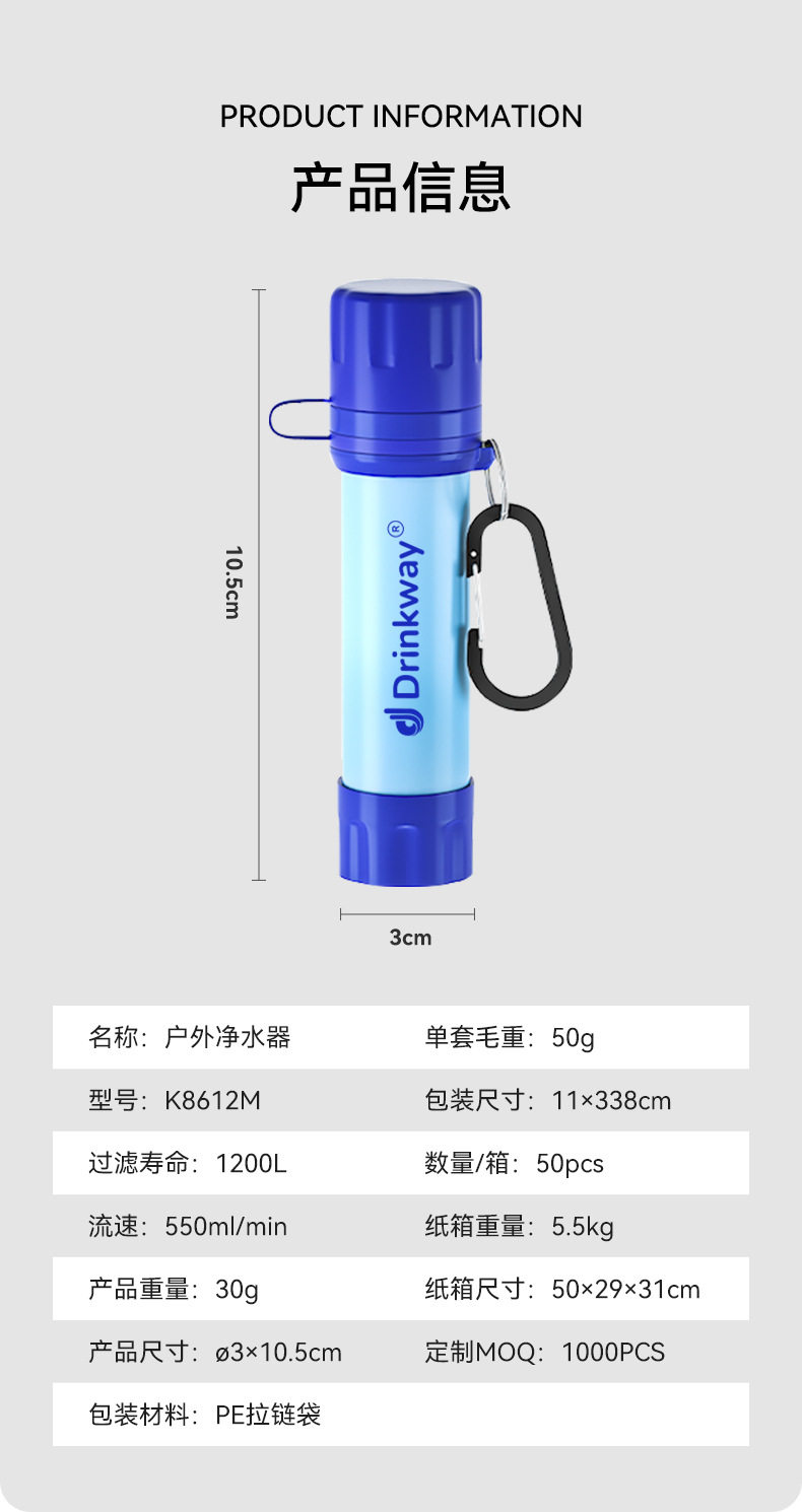 Outdoor Sports Mountain Camping Mini Compact Portable Water Purifier Straight Drinking Straw Filter Emergency Survival Tool