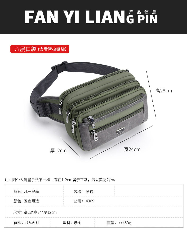 Multi-functional new trendy men's waist bag outdoor leisure large capacity business wallet work messenger bag