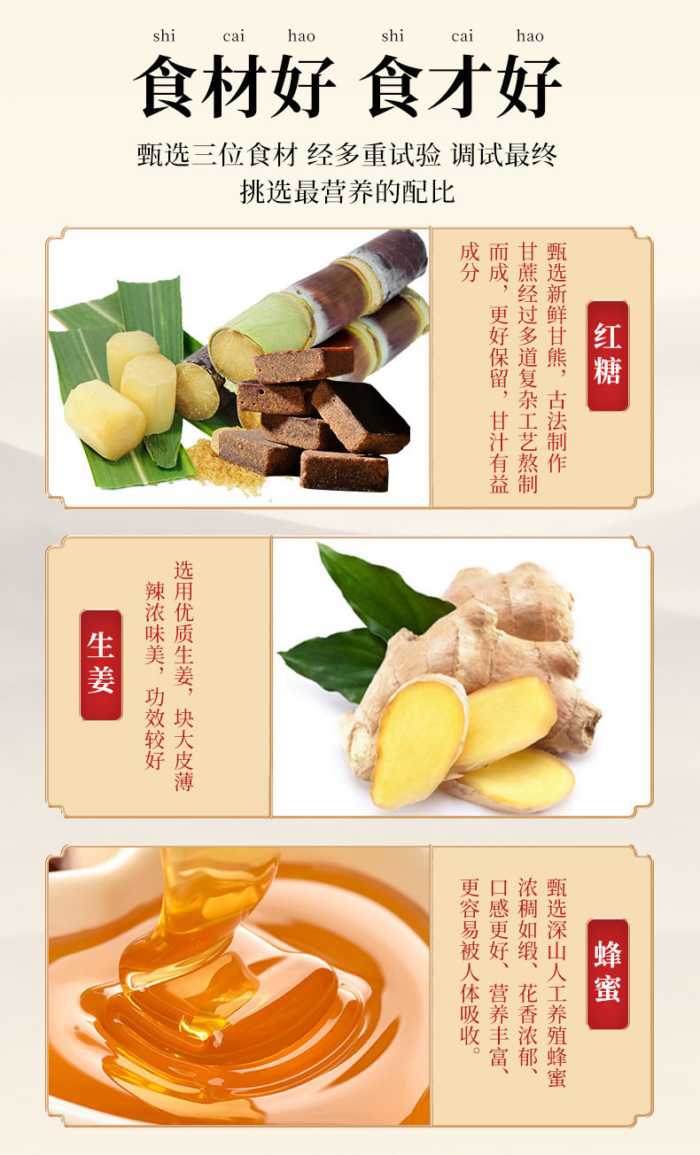 | Raw materials and ingredients | Red dates,Ginger,Brown sugar |