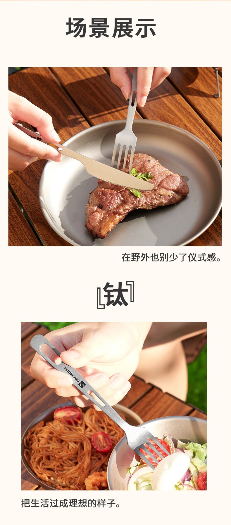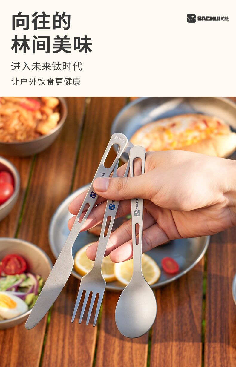 Outdoor Pure Titanium Spoon Camping Titanium Spoon Camping Portable Titanium Metal Tableware Steak Knife and Fork Spoon Spoon suit