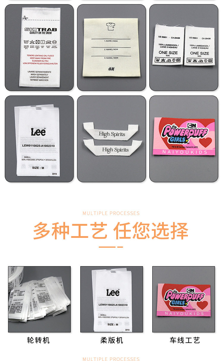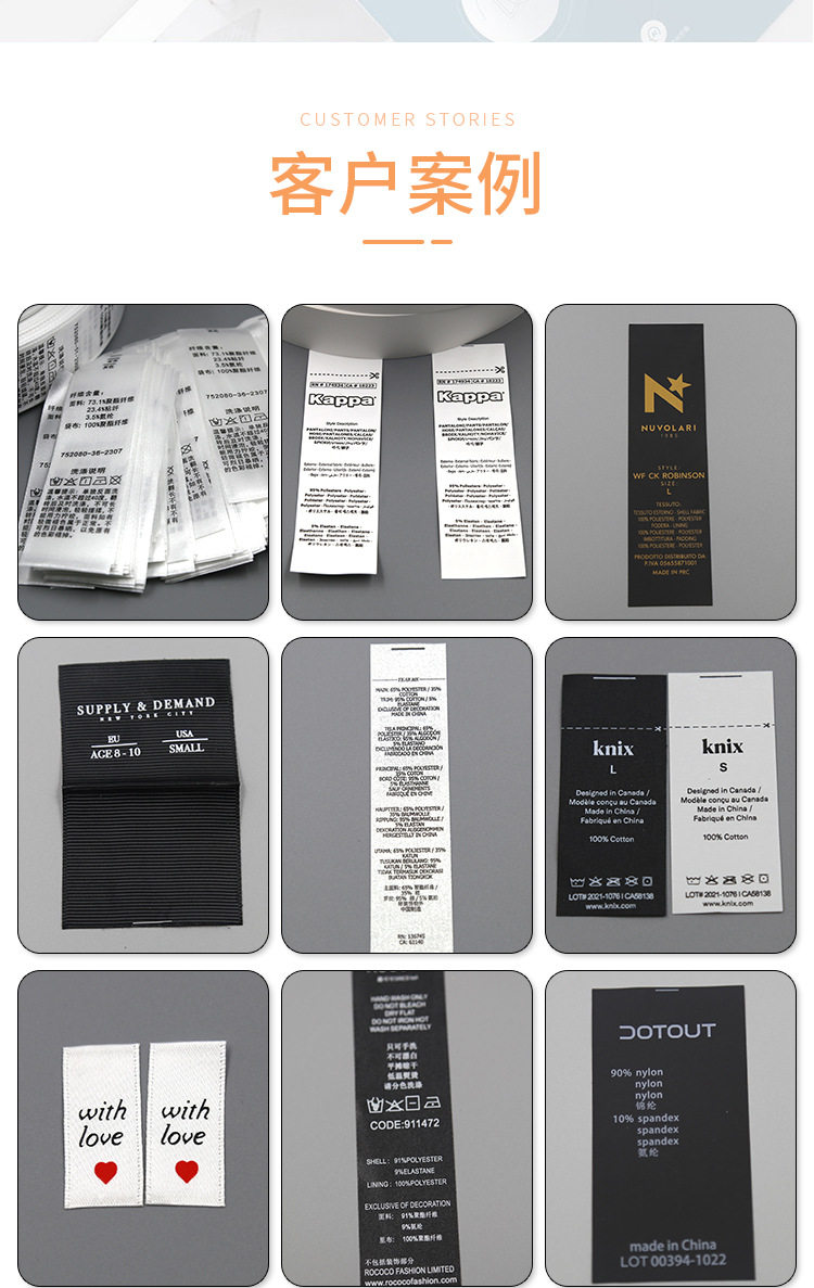 Clothing Wash Labels, Clothing Wash Tags, Sample Colorful Printed Labels, Trademark Wholesale, Ready-Made Wash Labels, Label Production