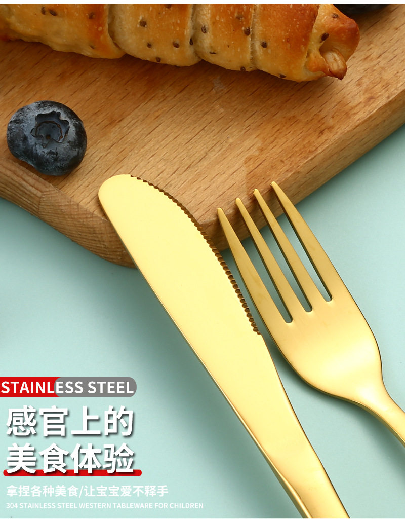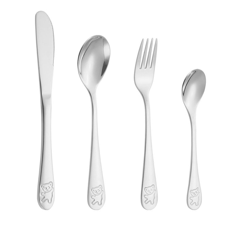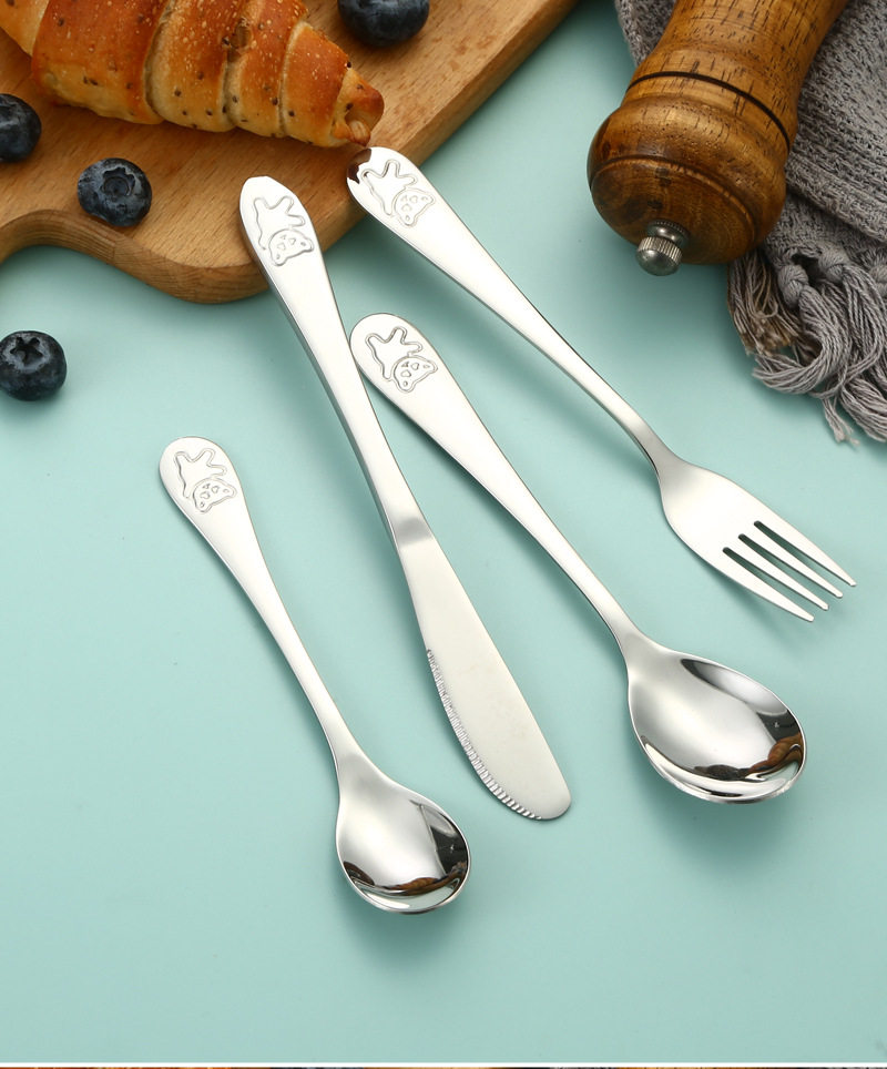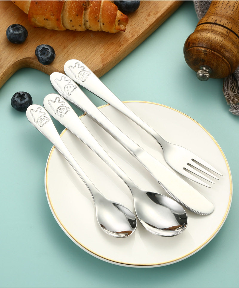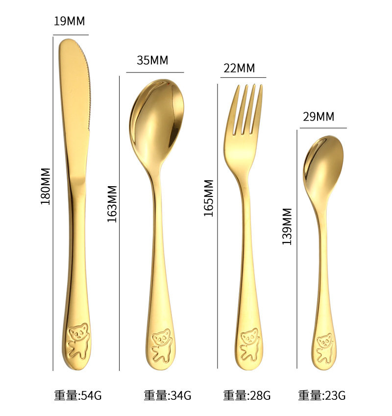 Bear four-piece 304 stainless steel tableware suit cartoon children's spoon Fork knife dessert spoon student Golden Western food