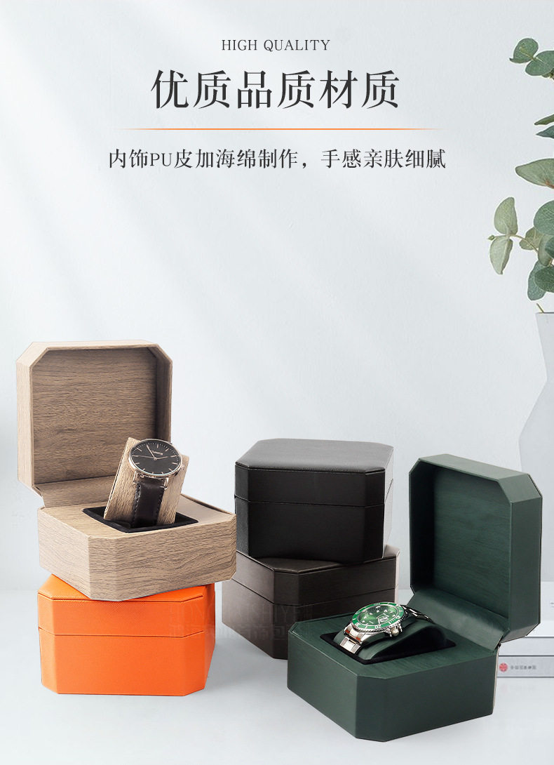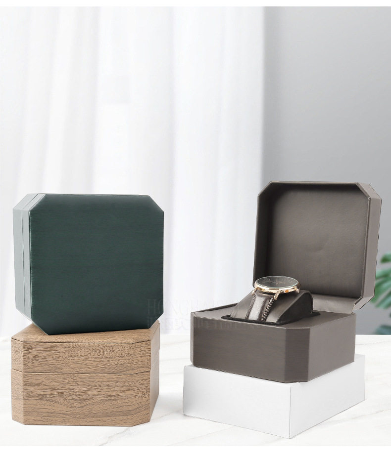 Octagonal Pu Leather Watch Box Men's Business Watch Packaging Box Single Watch Jewelry Storage Box High-End Jewelry Box