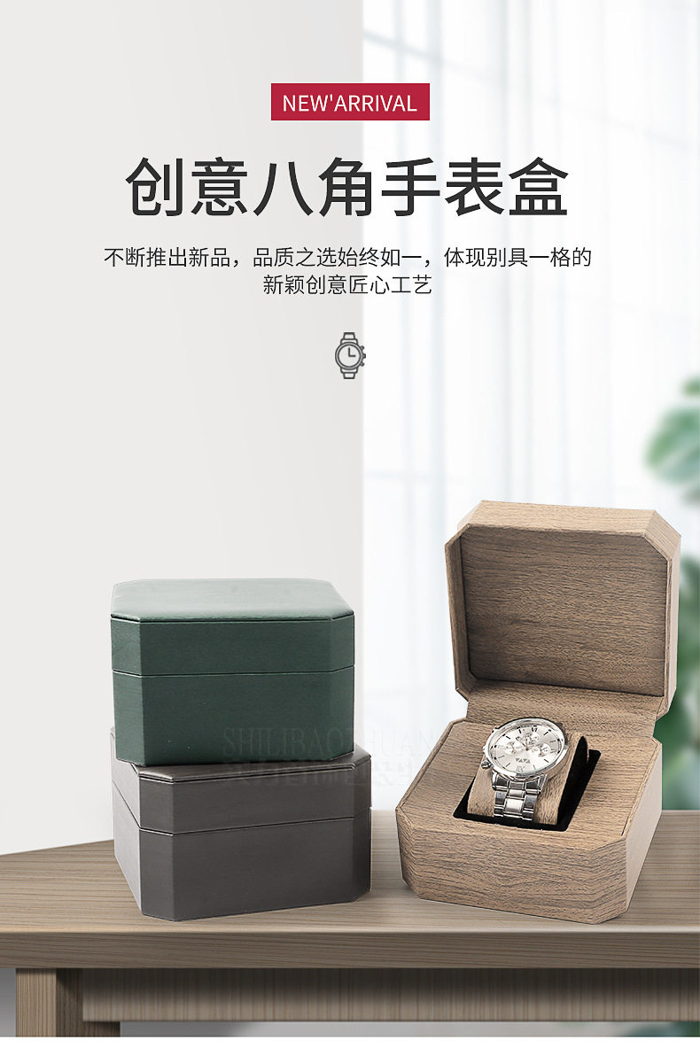 Octagonal leather watch box PU leather watch packaging gift box Green watch box Watch bracelet storage portable watch box
