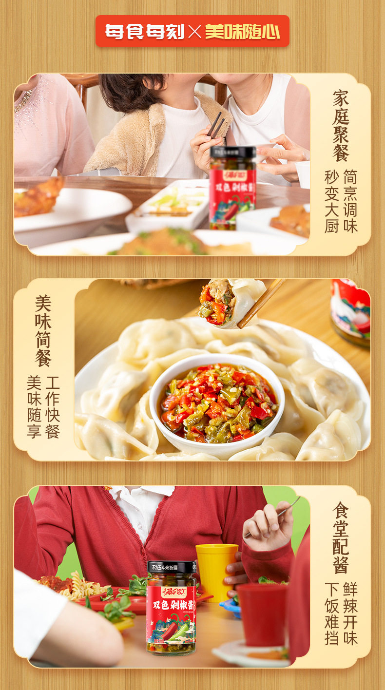 | Packaging specifications | Two-color chopped pepper sauce 200g*1 bottle |