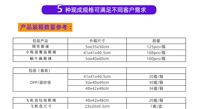 | Packaging specifications | Suit |