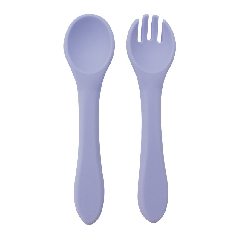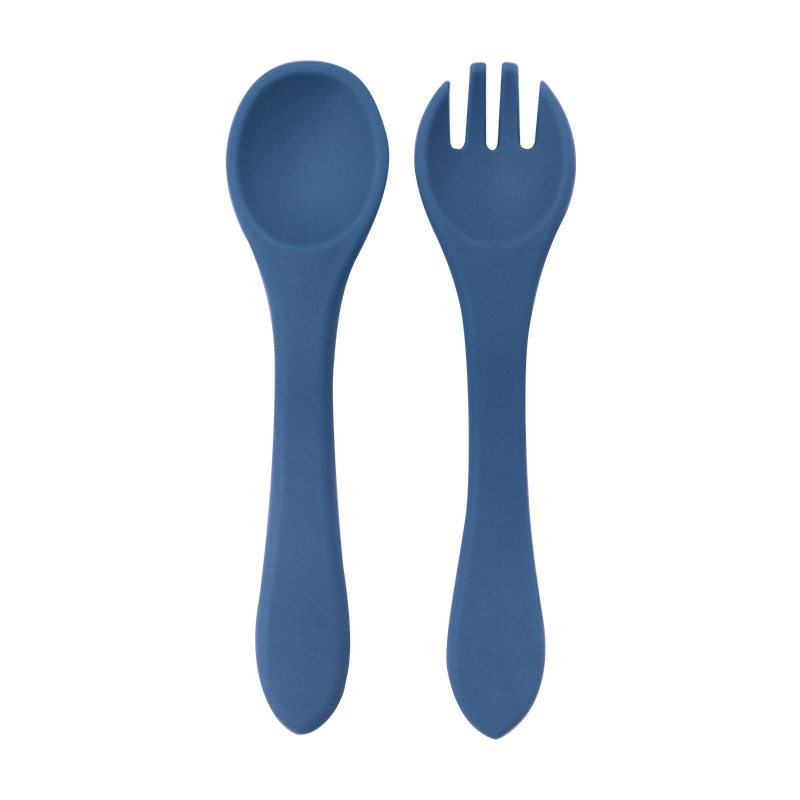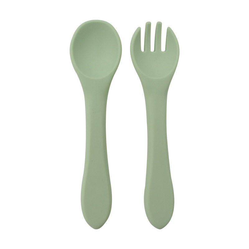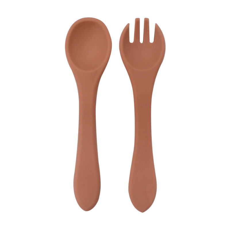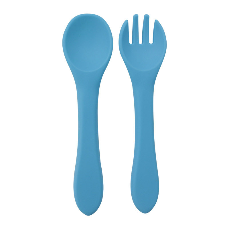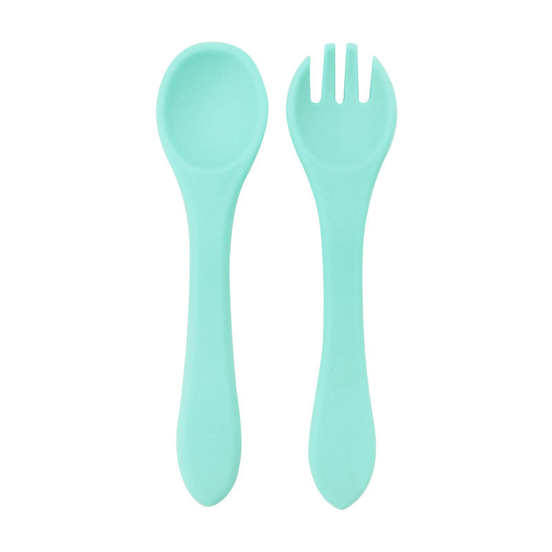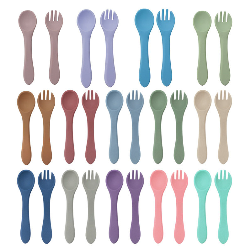 Baby food grade silicone food supplement fork spoon children anti-fall anti-deformation multi-color silicone fork spoon wooden handle fork spoon suit