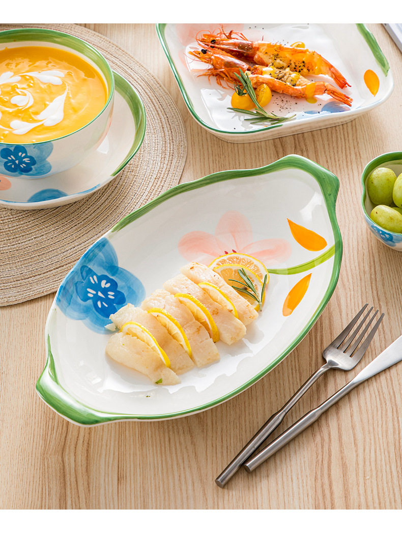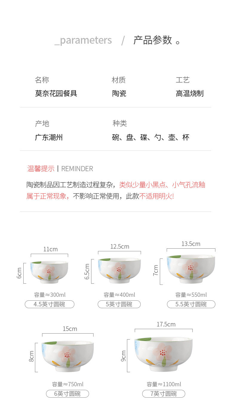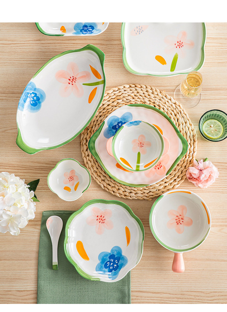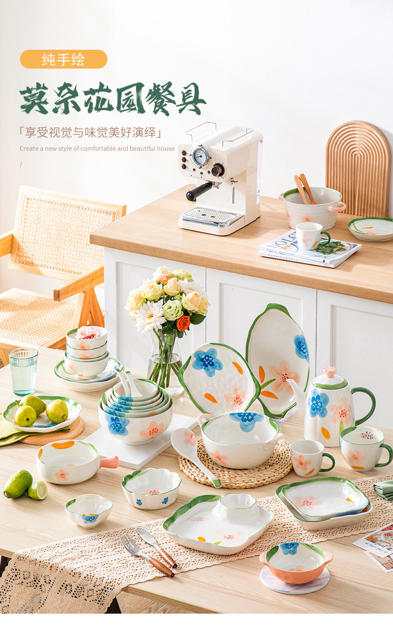 Wholesale Monet Garden Japanese pastoral style ceramic rice bowl flavor dish plate ins high color value Chaozhou tableware suit