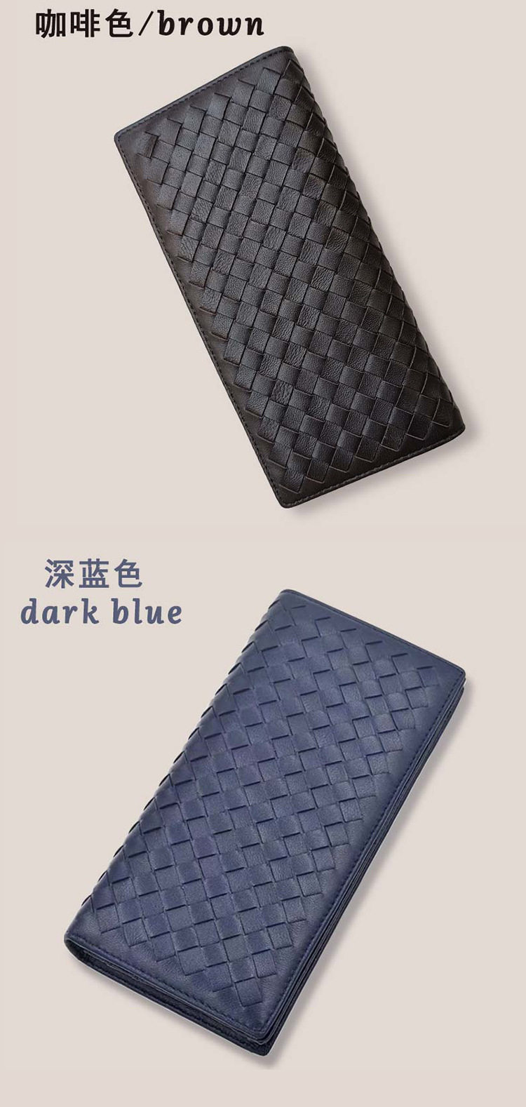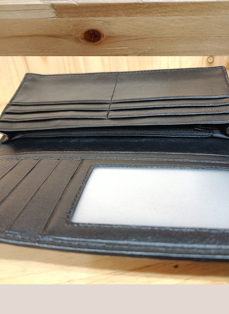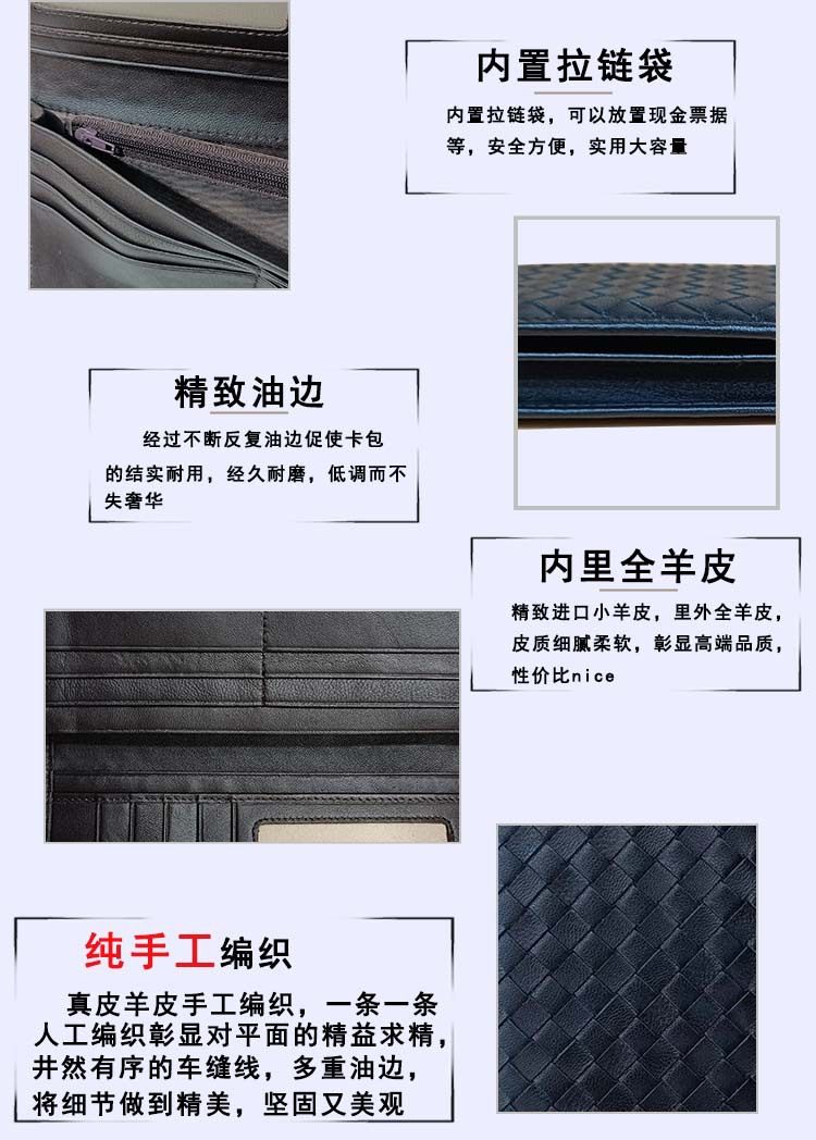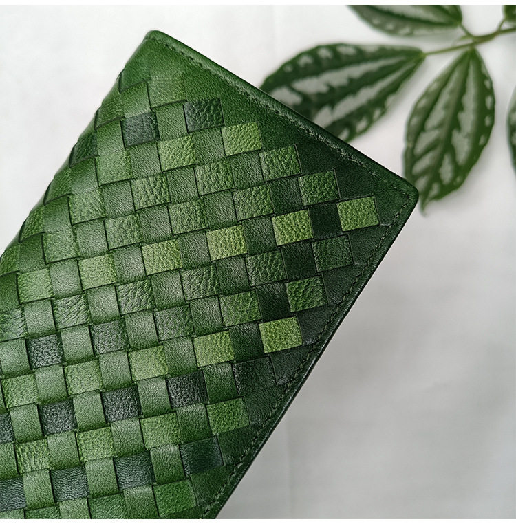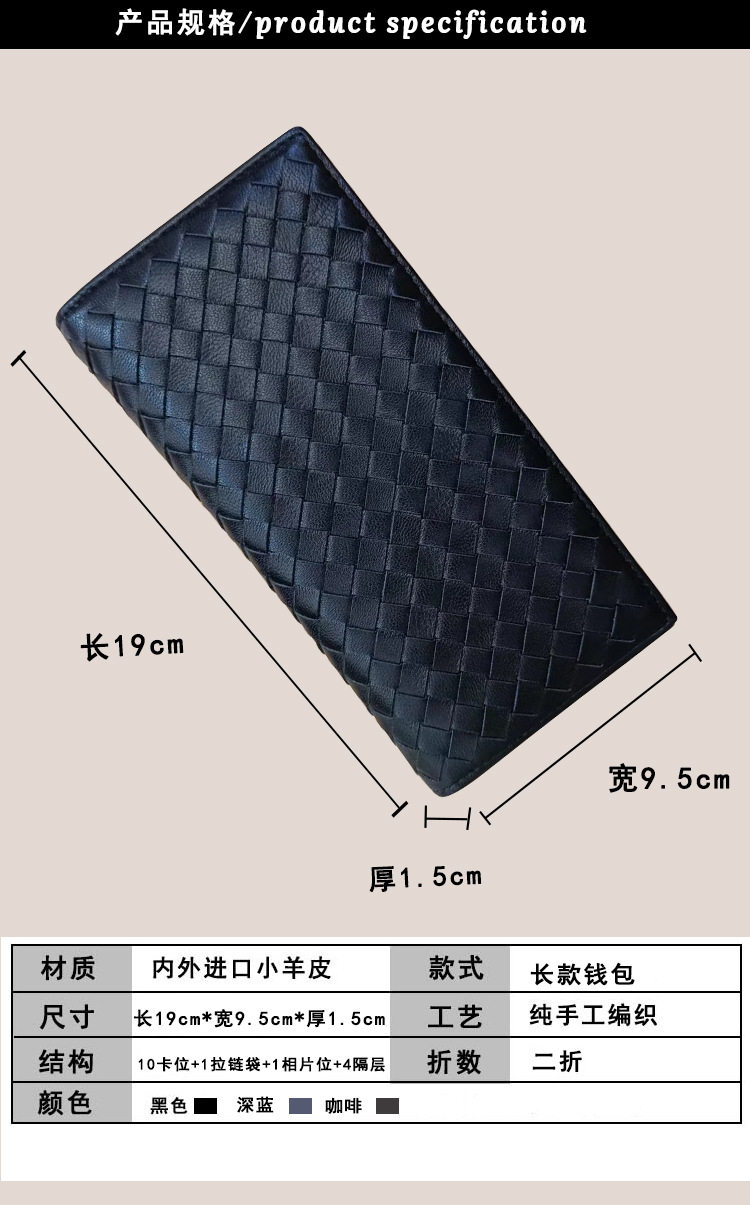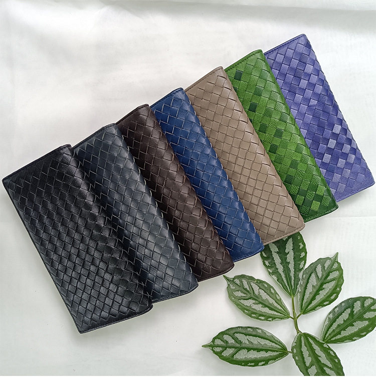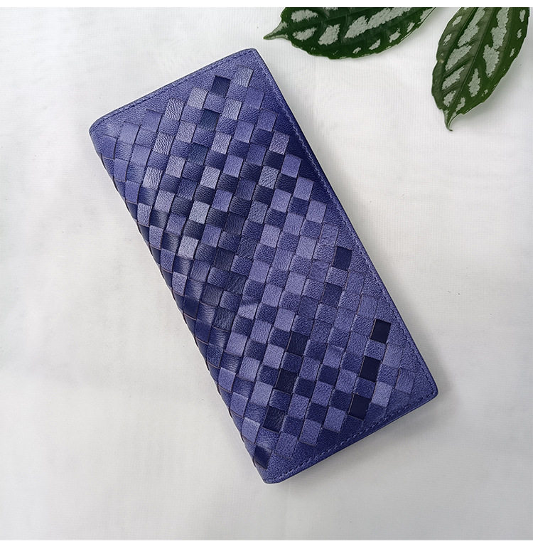 Factory wholesale men's and women's leather hand-woven long wallet sheepskin lightweight wallet large capacity card holder