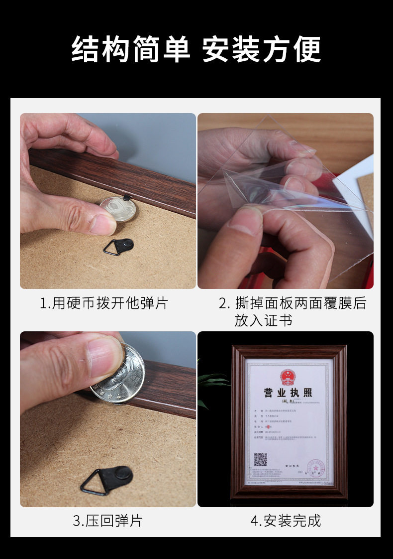a4 wooden certificate frame simple a3 business license frame calligraphy and painting calligraphy 8K frame a5 certificate photo frame wholesale