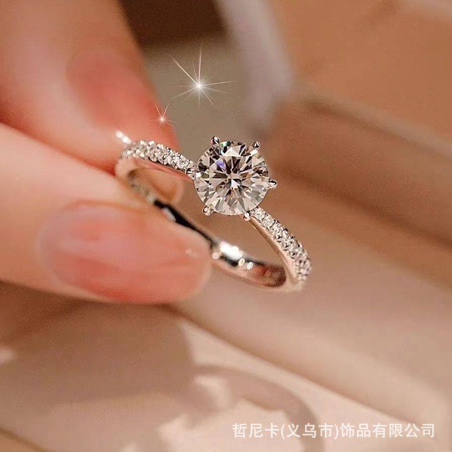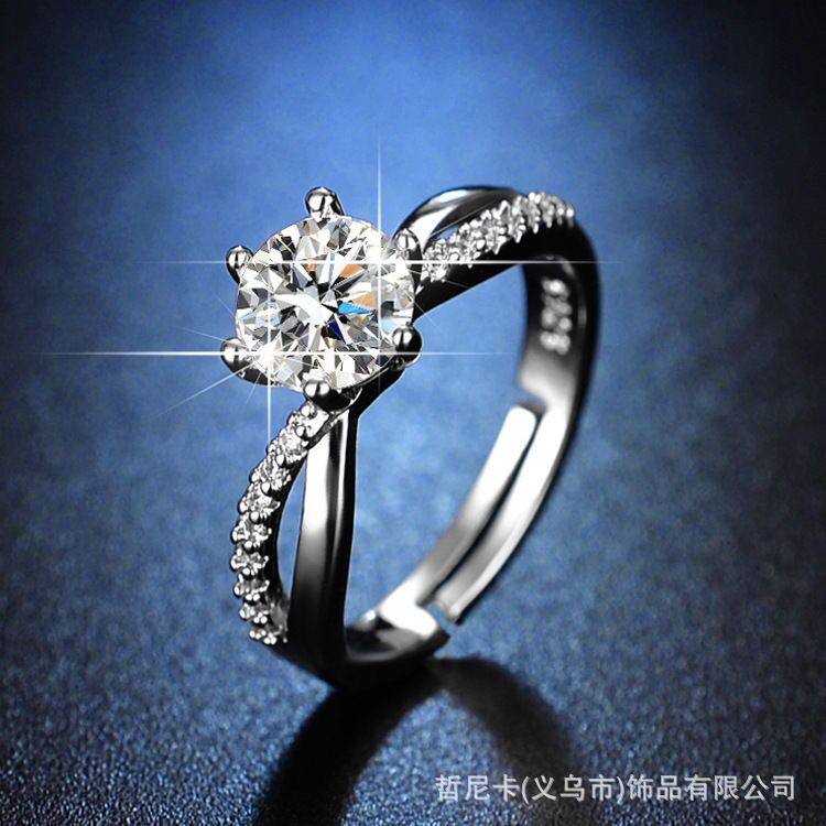 New luxury wedding ring diamond ring couple's ring wedding ring fashion simple open mouth adjustable live broadcast recommend