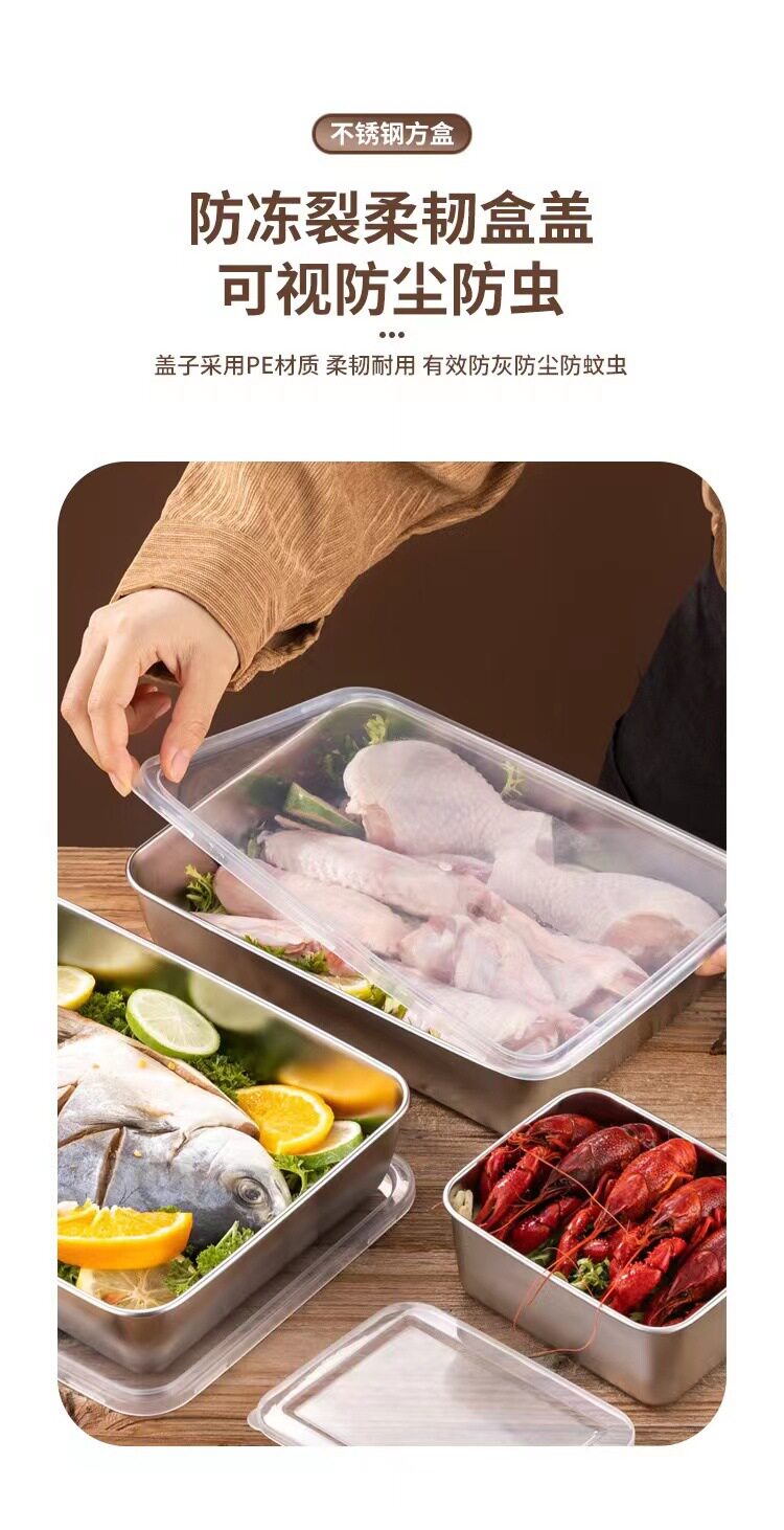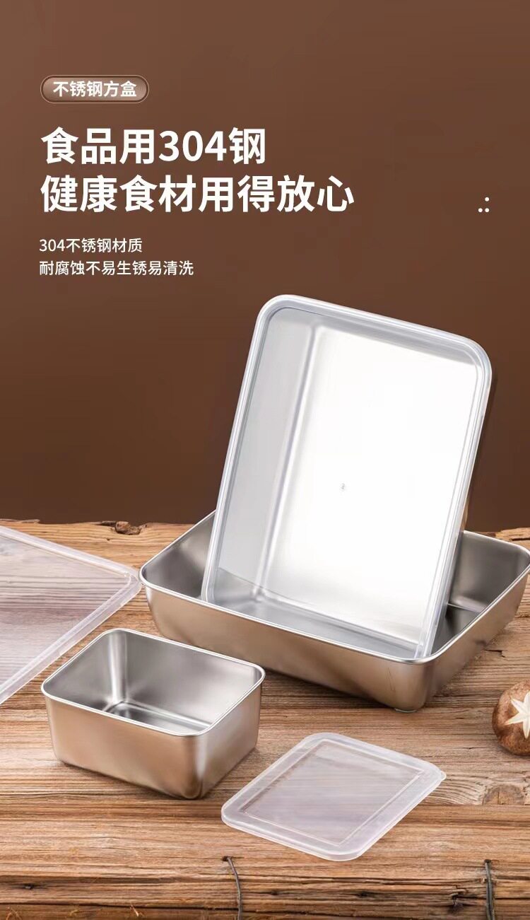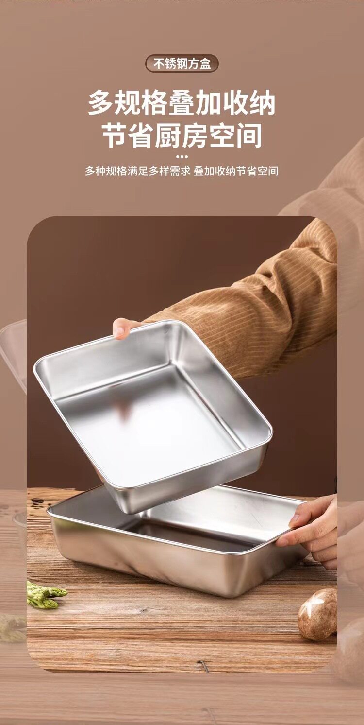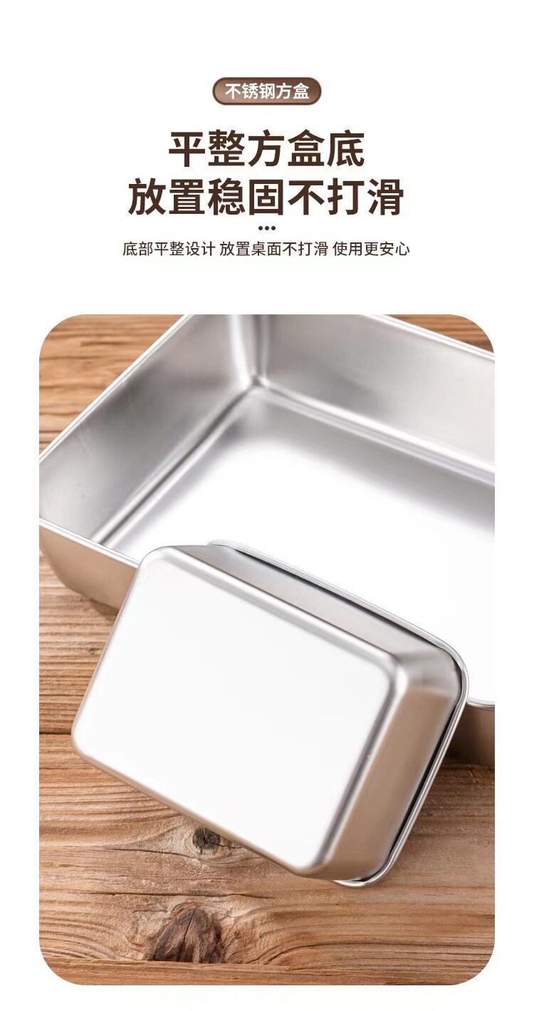 Stainless steel towel plate with lid square plate tray Japanese square plate dish tray refrigerator crisper kitchen storage box