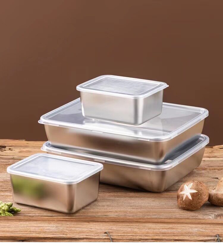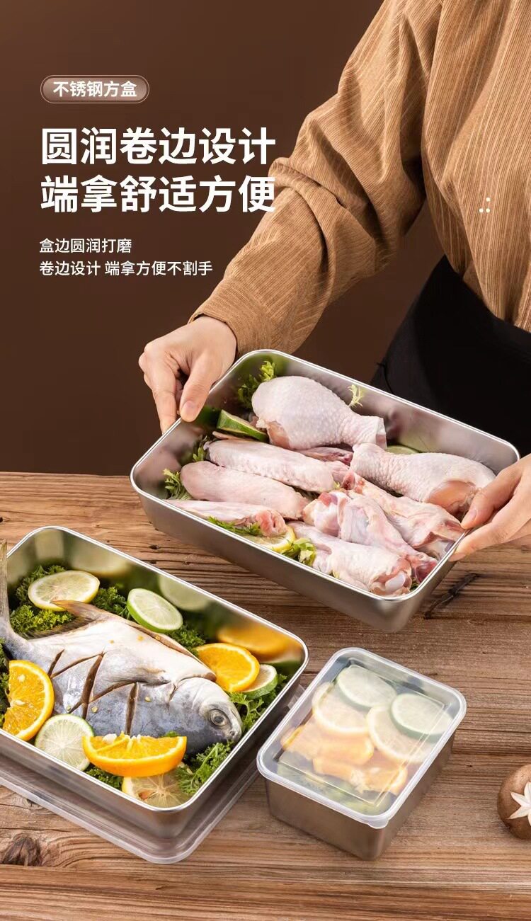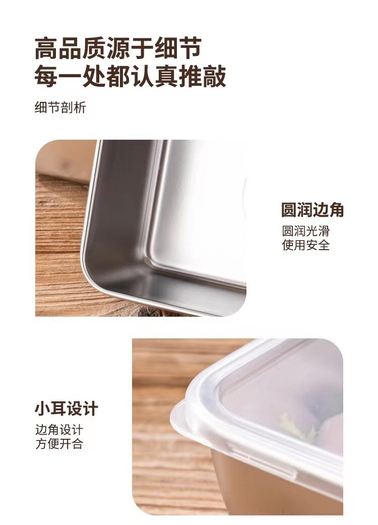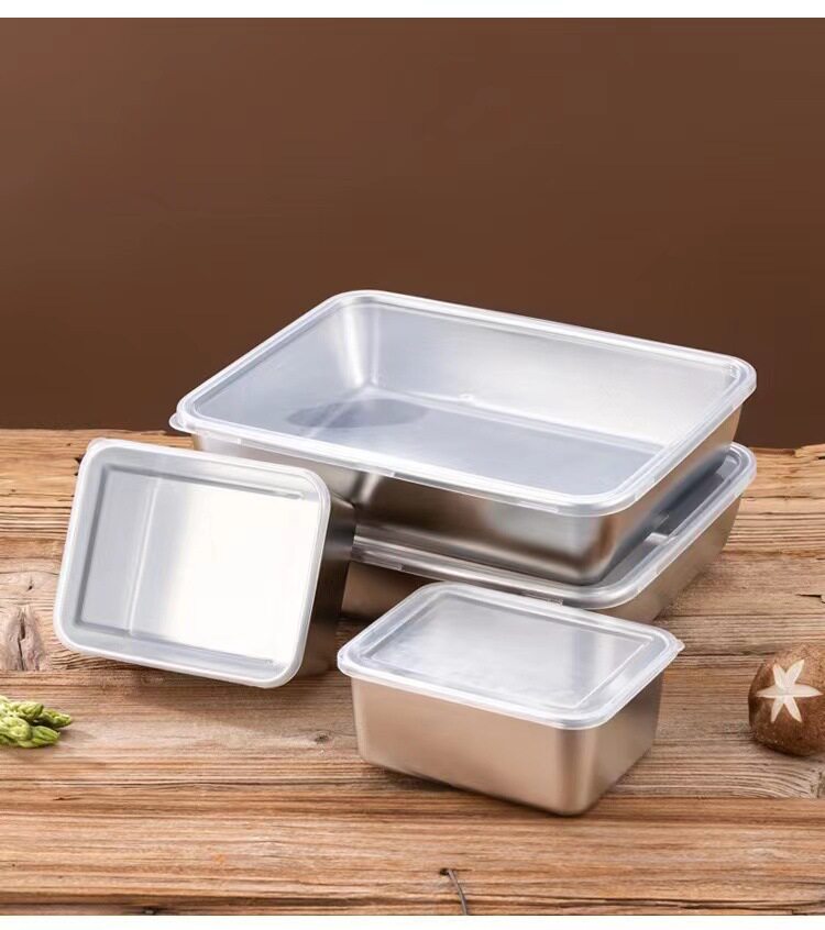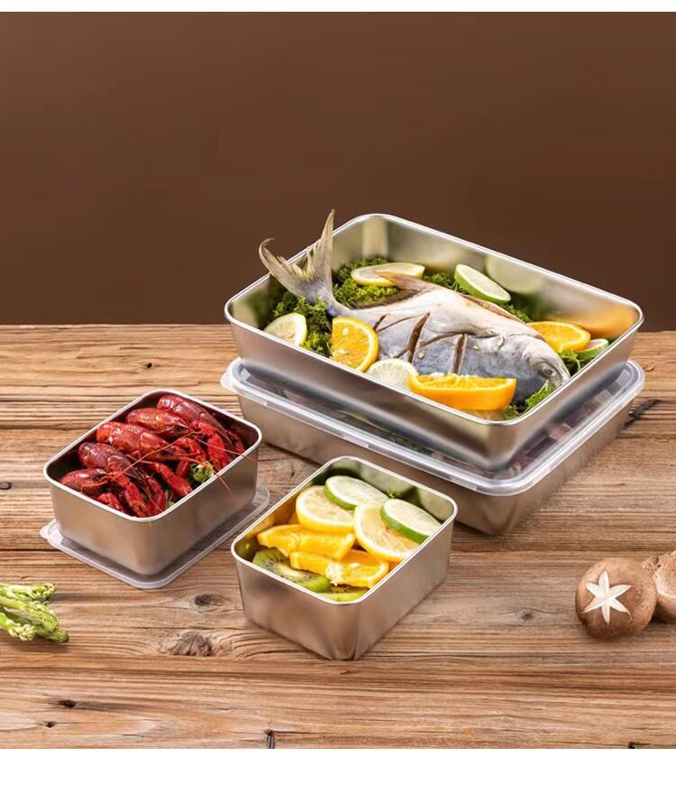 Stainless steel towel plate with lid square plate tray Japanese square plate dish tray refrigerator crisper kitchen storage box
