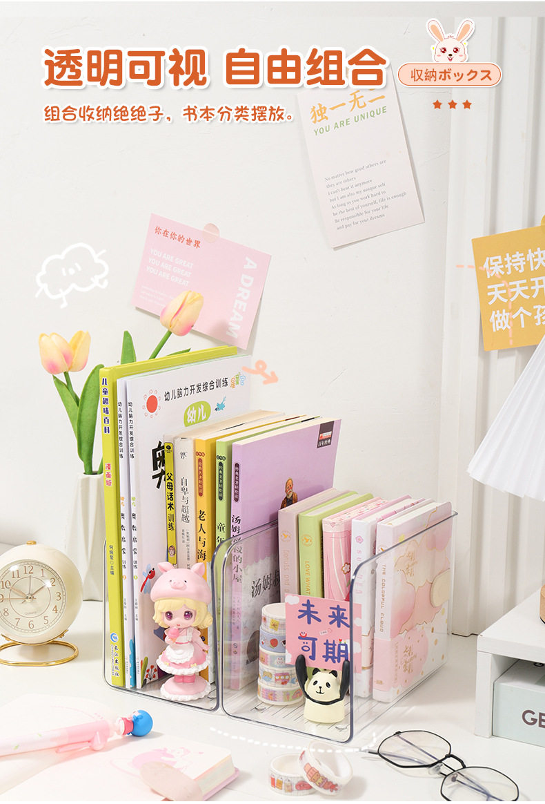 Book stand file holder acrylic desktop transparent bookshelf stand fixed book book holder Desktop Storage Box storage rack