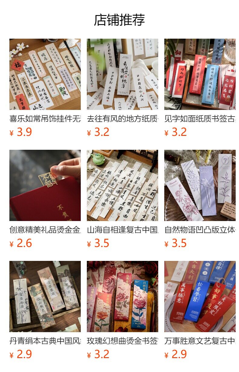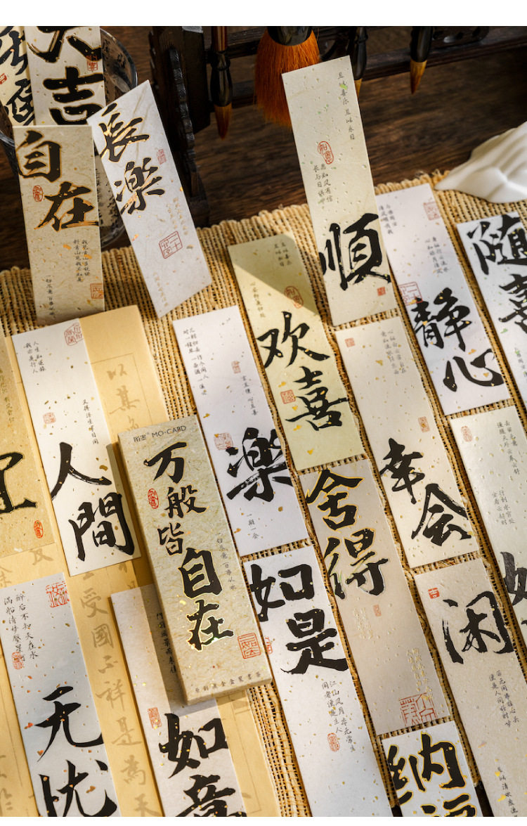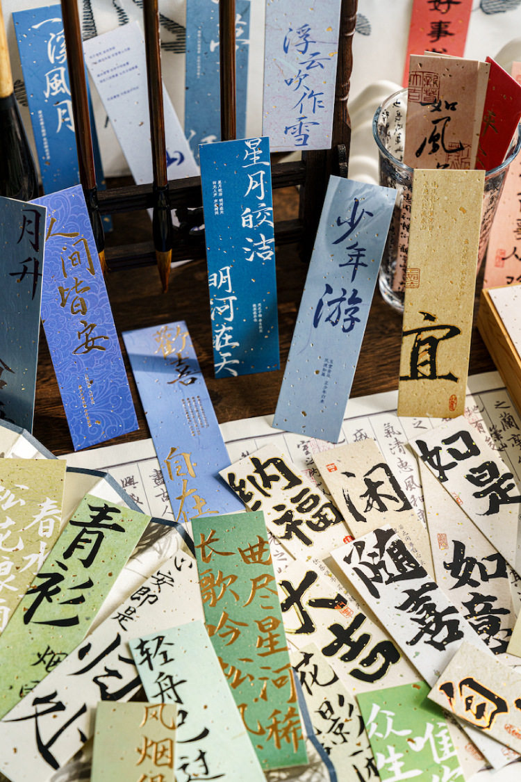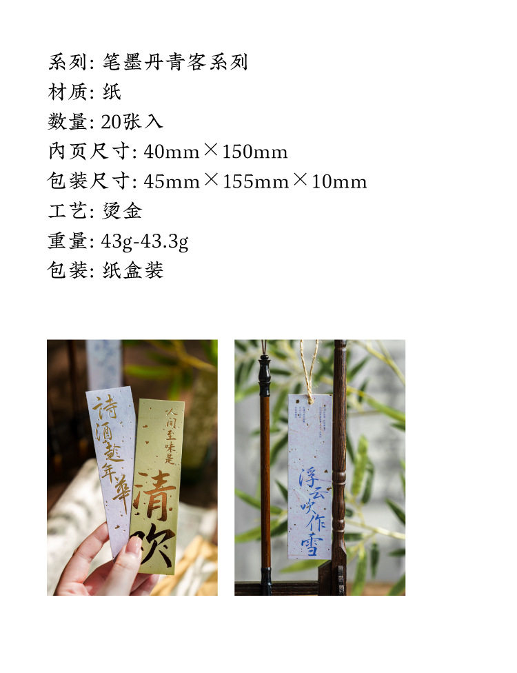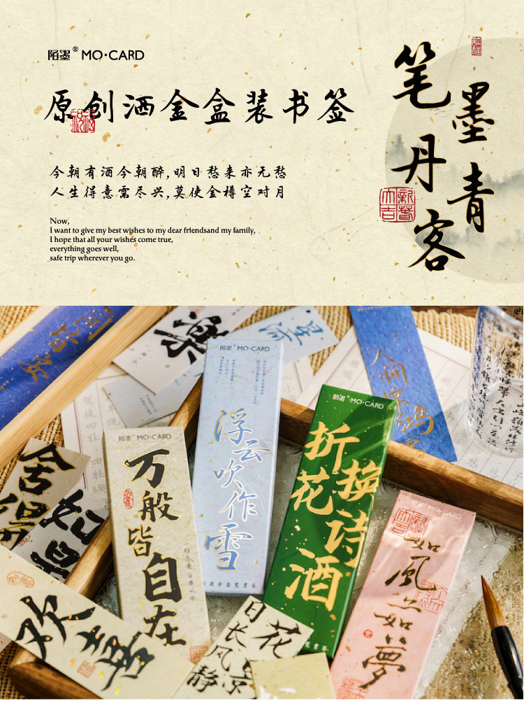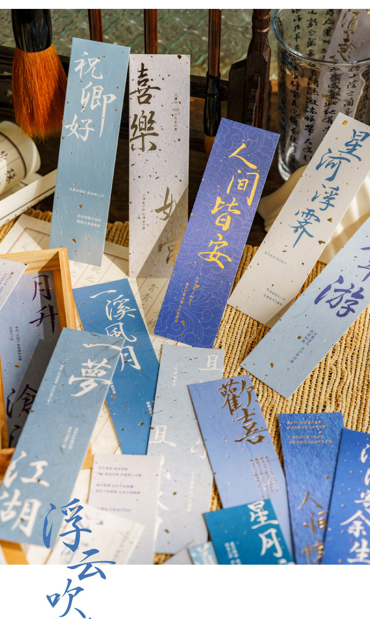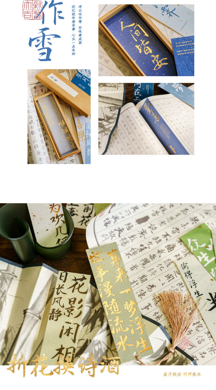 Pen and ink Danqing gilding paper bookmark classical Chinese style poetry calligraphy Journal gift reading tender page