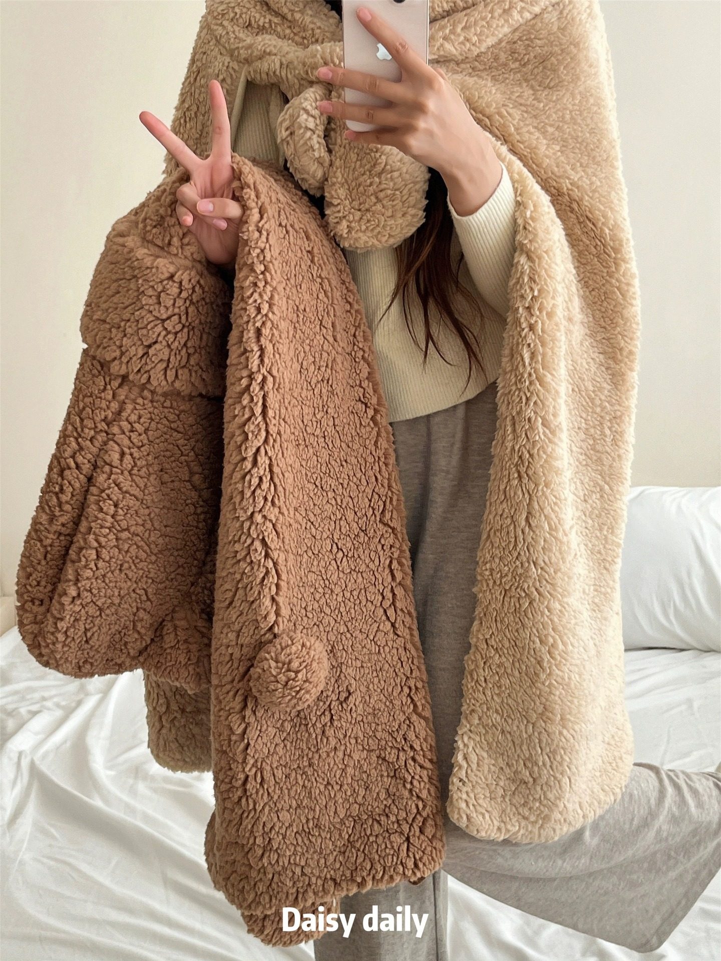Cartoon bear cloak cute autumn and winter thickened warm blanket shawl hooded student lunch break nap blanket cloak