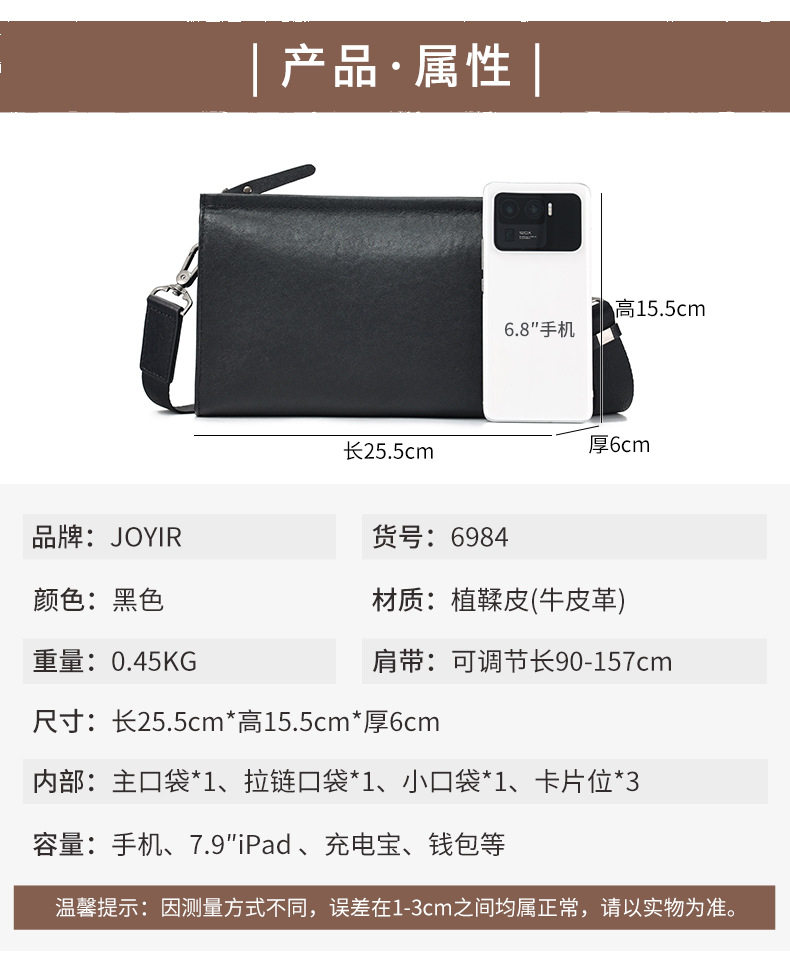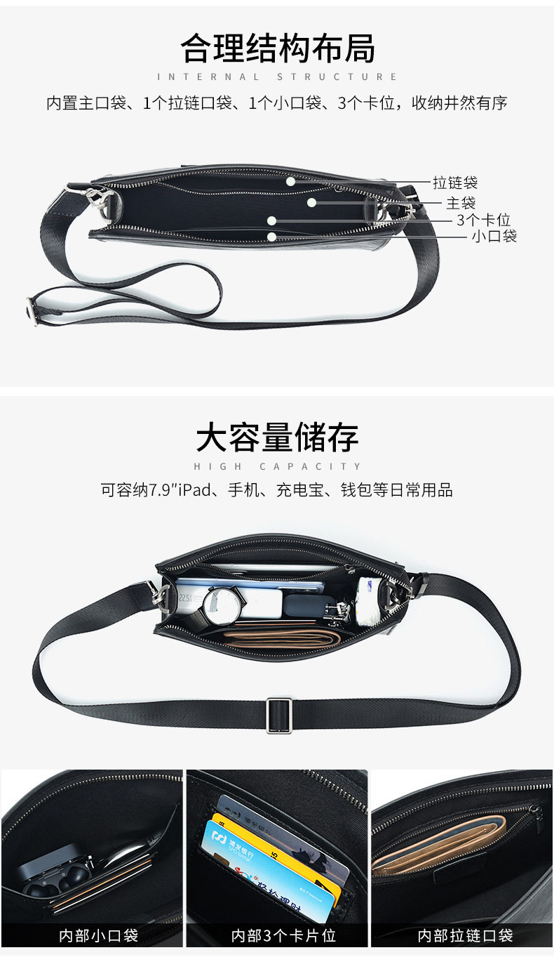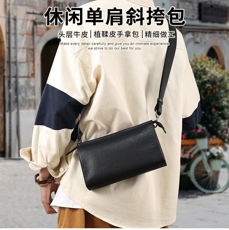 Cowhide Casual Trendy Brand Shoulder Bag Men's Bag Genuine Leather High-end Men's Crossbody Bag Multi-functional Business Clutch Bag