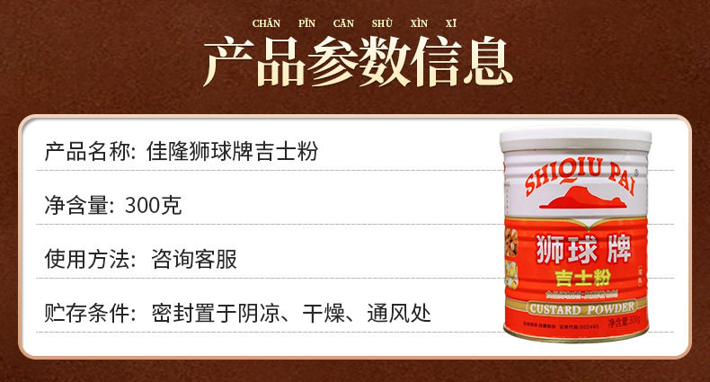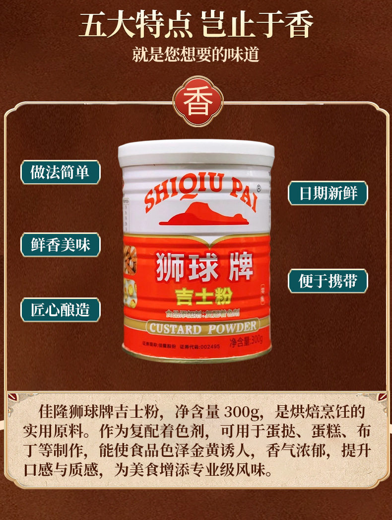 Jialong lion ball brand custard powder 300g custard powder pudding powder fried paste baking egg tart pizza free shipping
