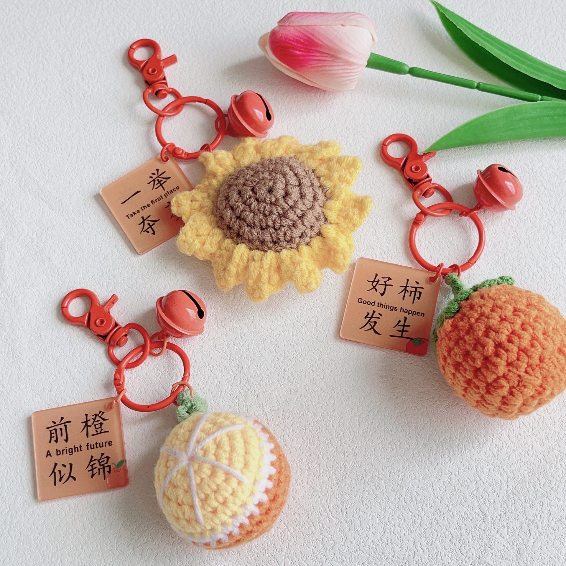 Hand-woven Persimmon keychain bag pendant plush cute key gift ornaments